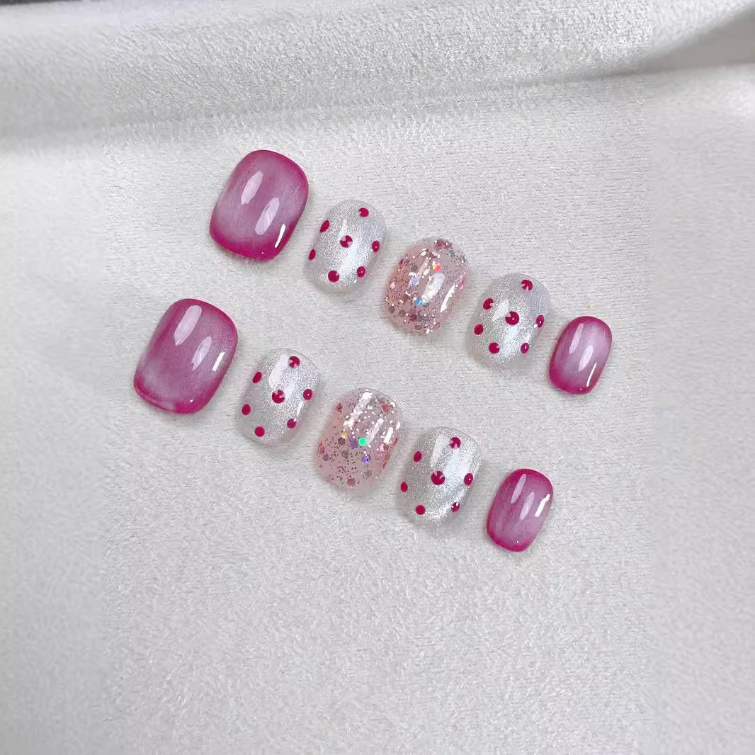 纯手工穿戴甲波点蜜茶粉金蝴蝶爱心短款可爱原创简约穿戴美甲贴片