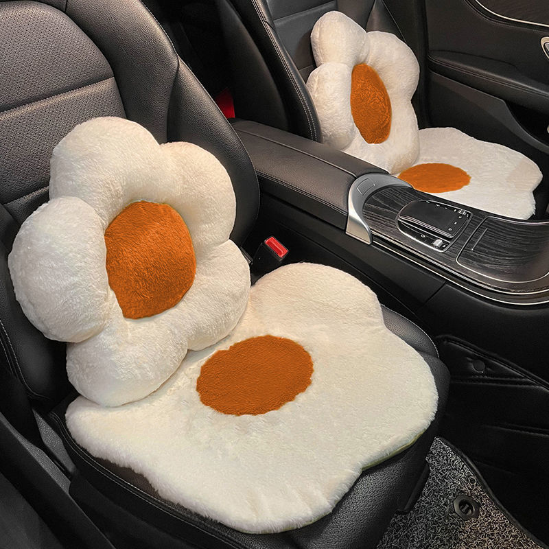 荷包蛋花冬季毛绒汽车坐垫腰靠可爱蛋黄车载座椅护腰靠垫座垫