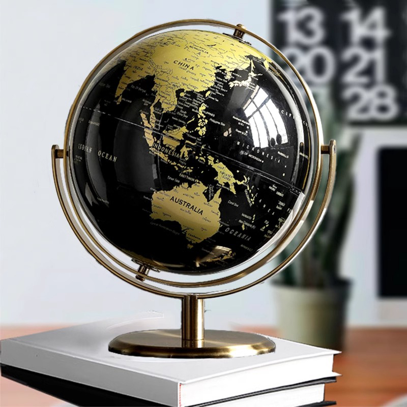 - 中号地球仪-万向轮20cm-黑金色(英文)