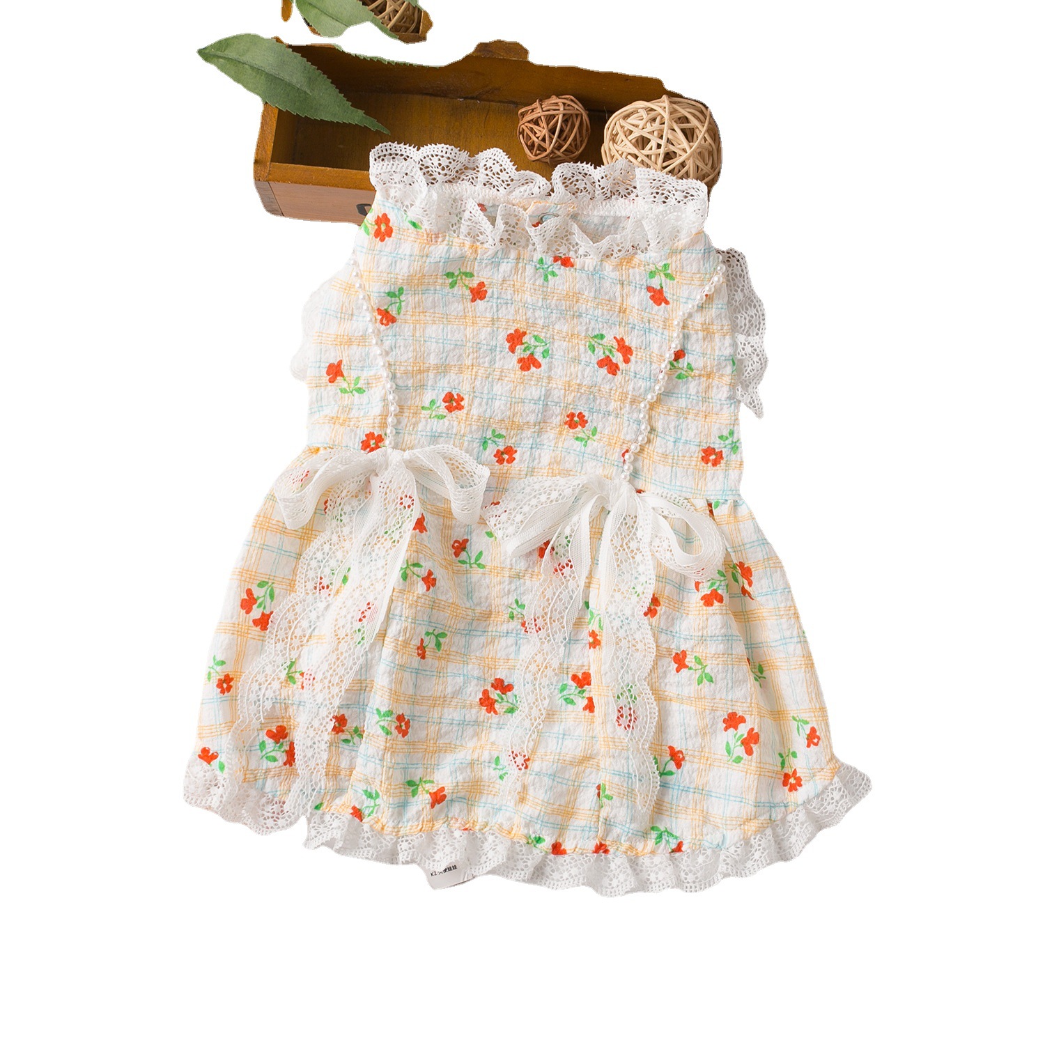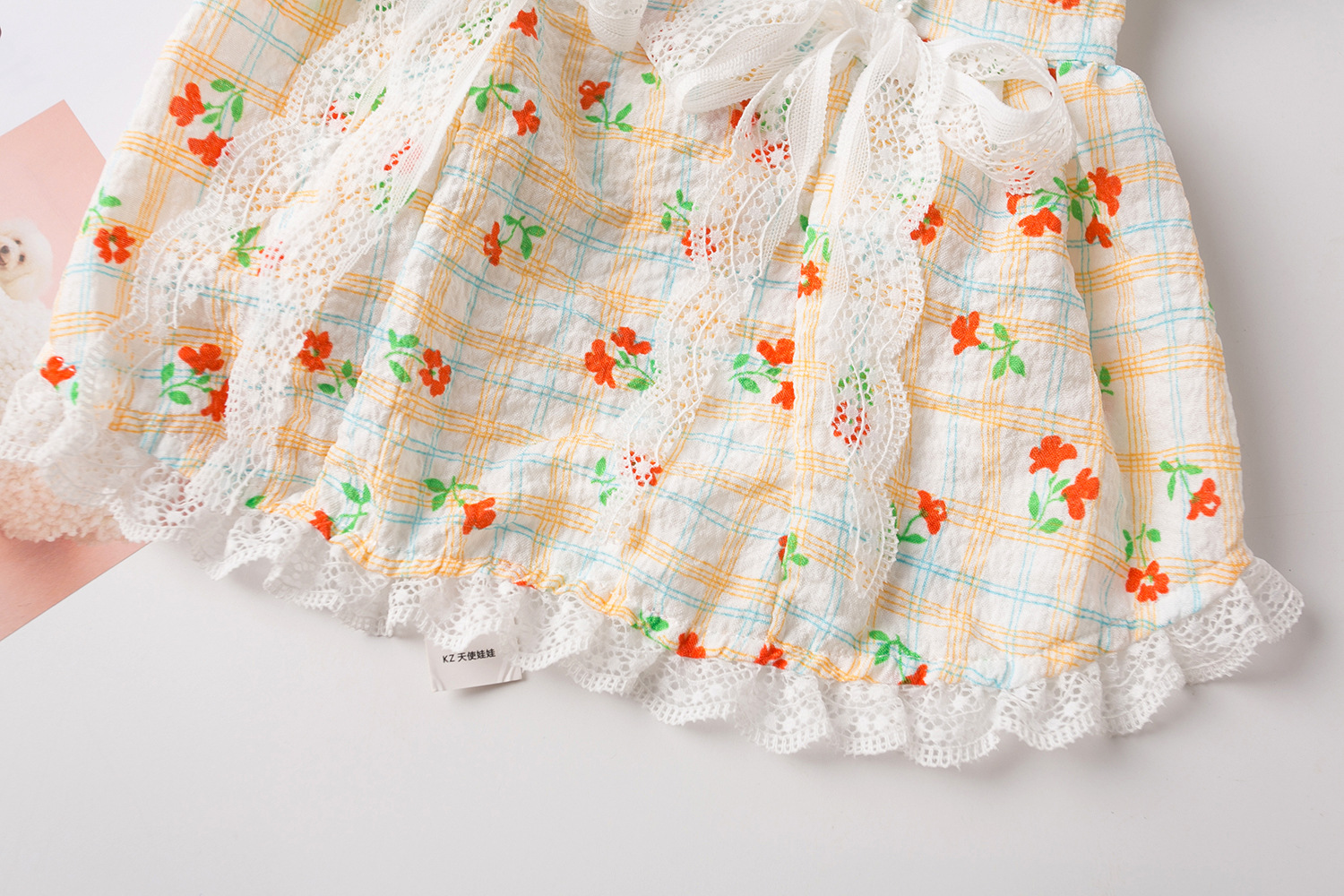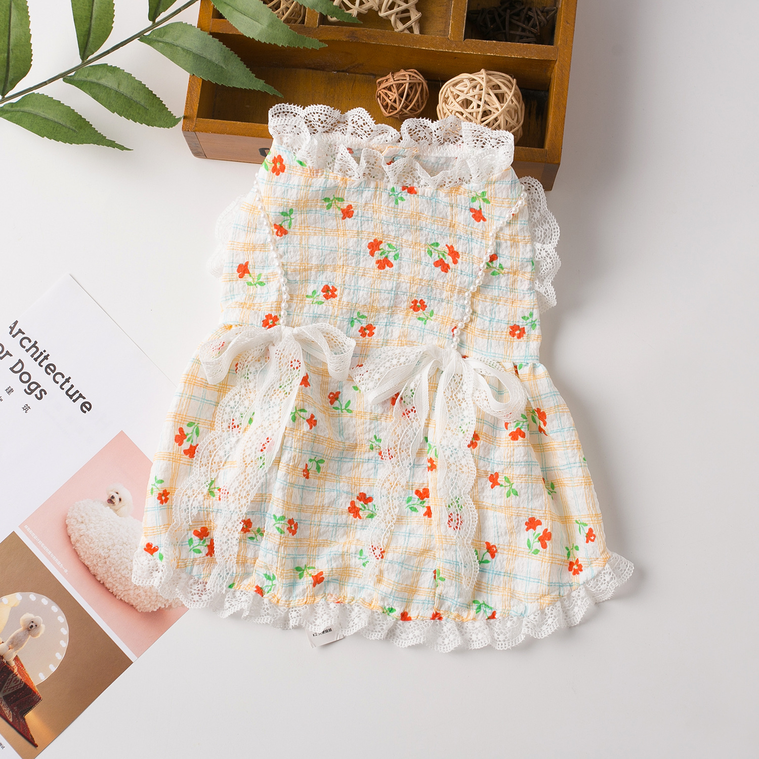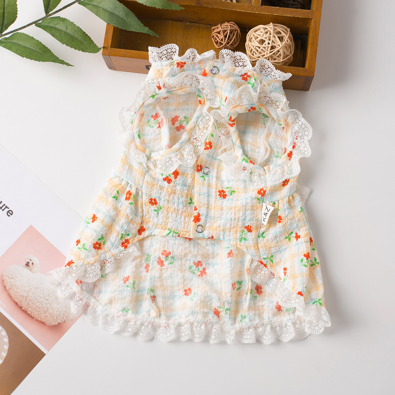 春夏狗狗猫咪薄款防掉毛衣服透气带牵引碎花吊带比熊博美柯基泰迪