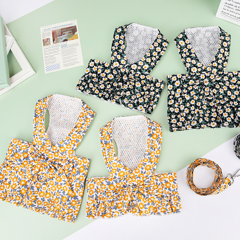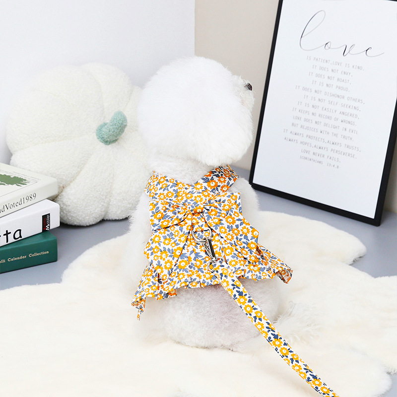 宠物衣服泰迪狗狗田园小菊裙可挂牵引绳中小型犬博美春夏小狗服饰