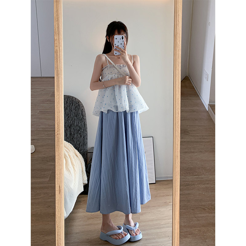 多巴胺蓝色冰丝阔腿裤女春夏季新款高腰垂感宽松雪纺山本裙裤