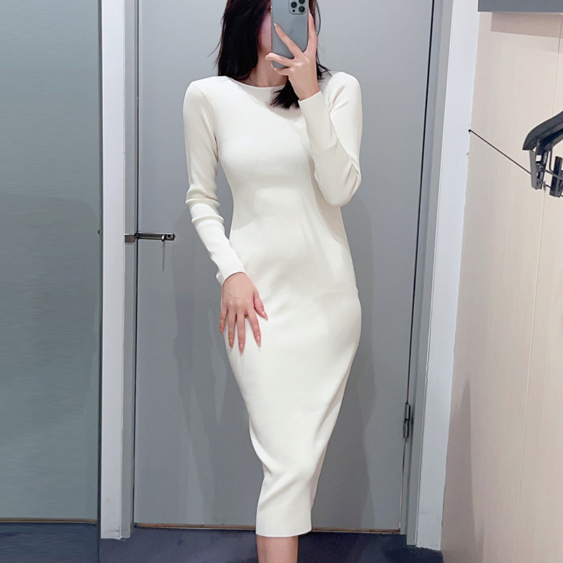 cos风加厚秋冬圆领内搭长裙抗起球修身显瘦打底裙长裙