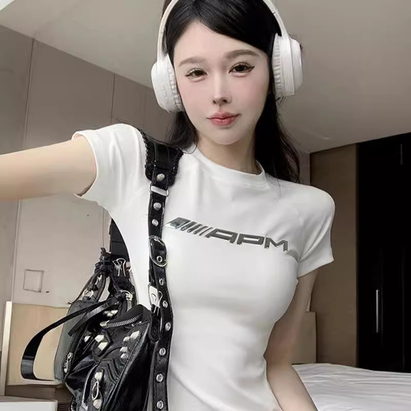 纯棉白色纯欲chic正肩短袖T恤女夏季美式辣妹修身显瘦短款露脐