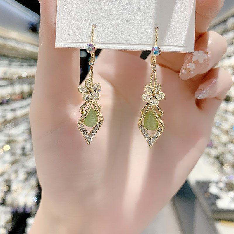 新款绿色猫眼石几何菱形耳环茶色高级感甜美耳饰百搭气质耳坠