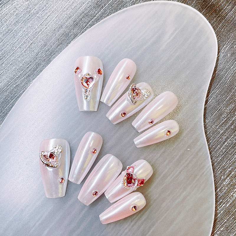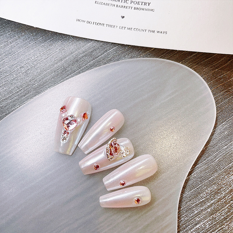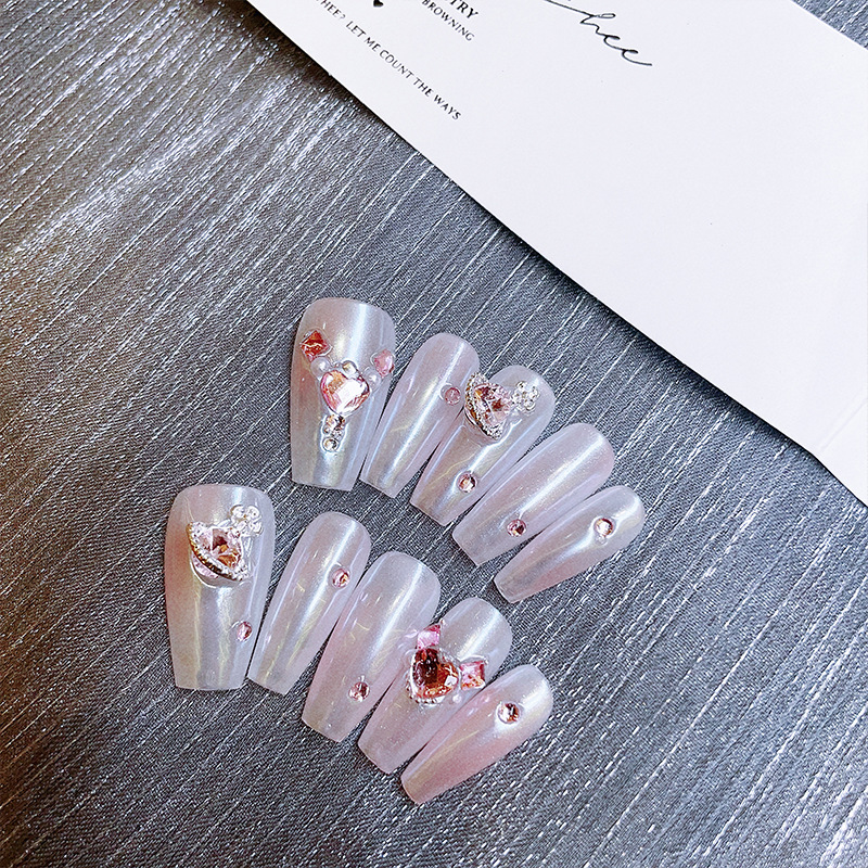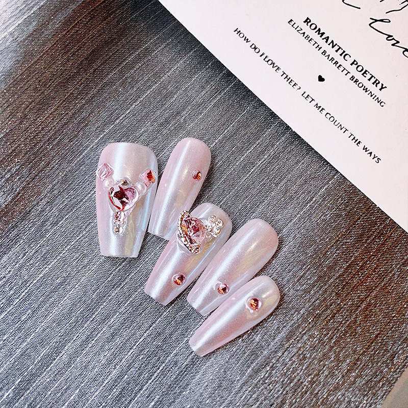 纯手工穿戴甲粉色星球可爱少女风贴钻美甲可拆卸光疗甲环保胶甲片