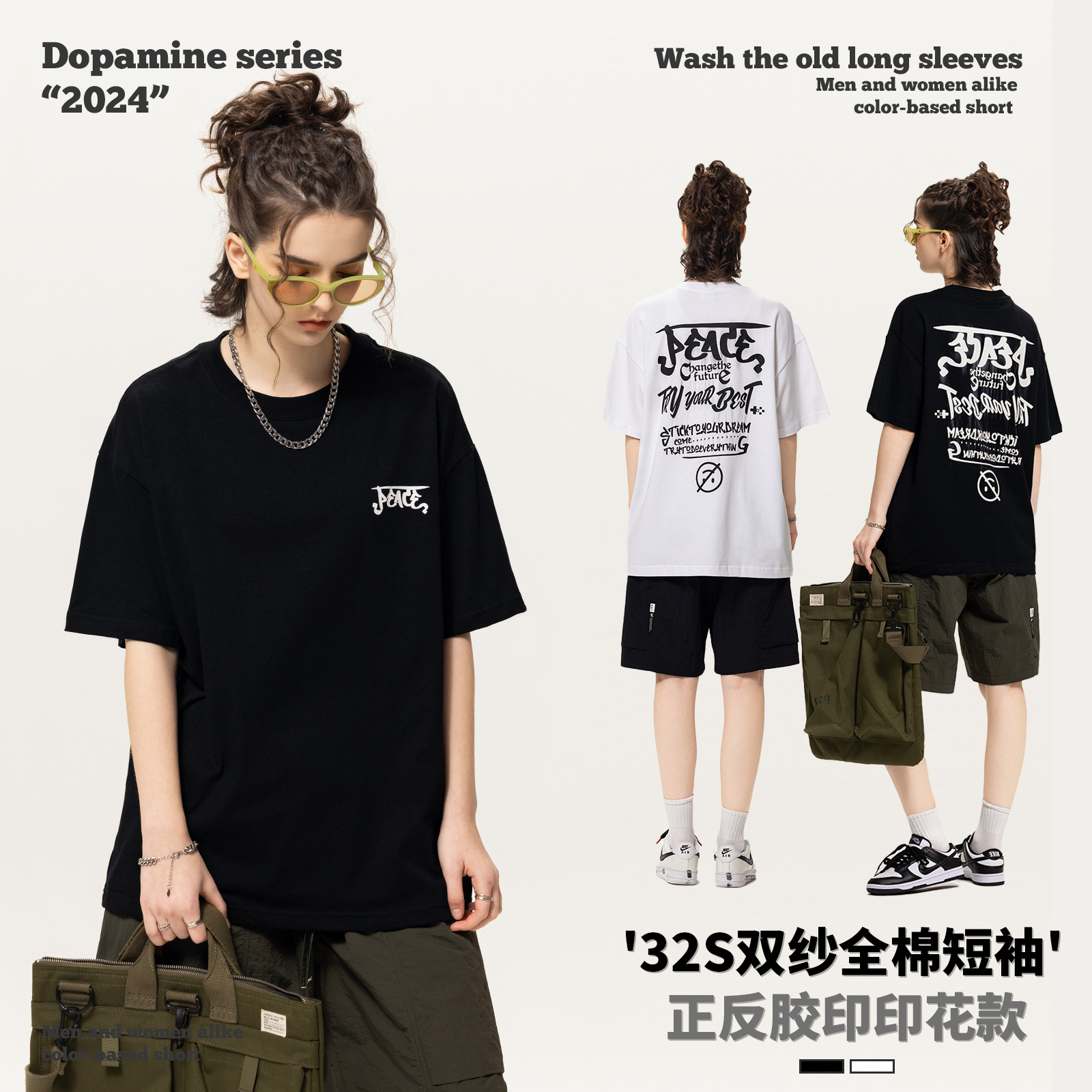 RS男装|230G重磅短袖t恤男跨境潮牌美式半袖西海岸印花纯棉t恤男