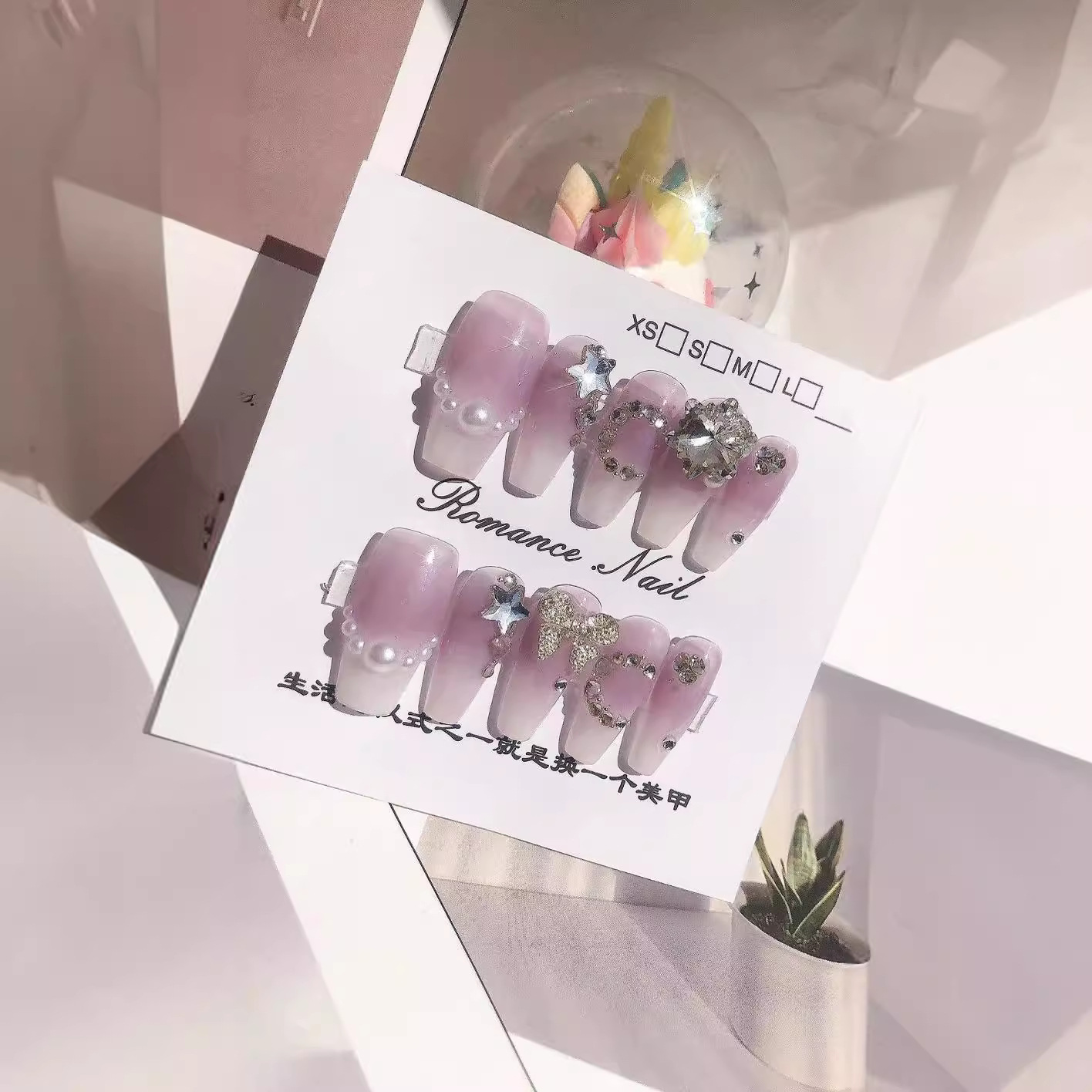 小红书同款手工穿戴甲淡紫法式蝴蝶镶钻美甲高级感轻奢甲片可拆卸