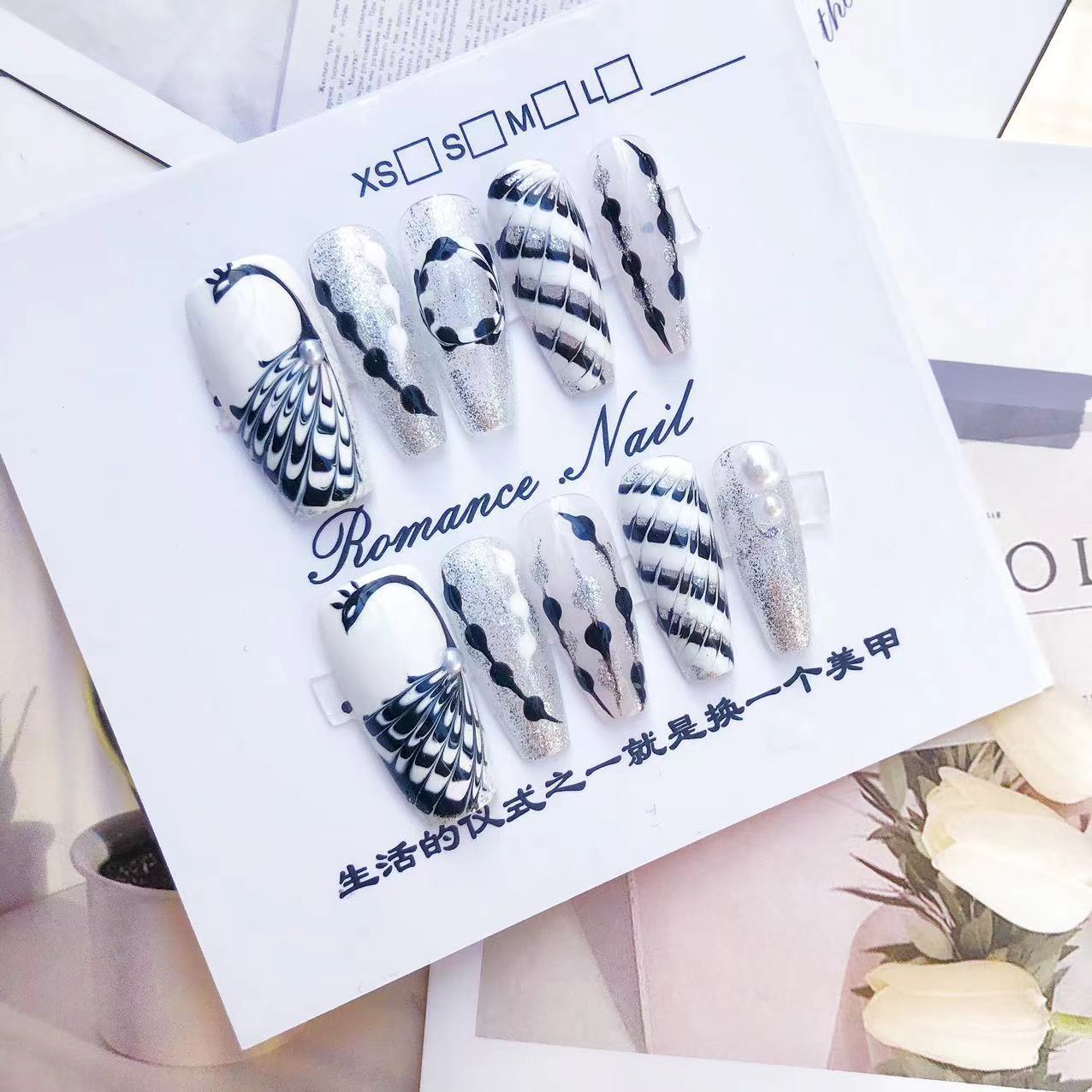 纯手工穿戴甲重工孔雀尾手绘美甲可拆卸重复使用光疗甲片学生美甲
