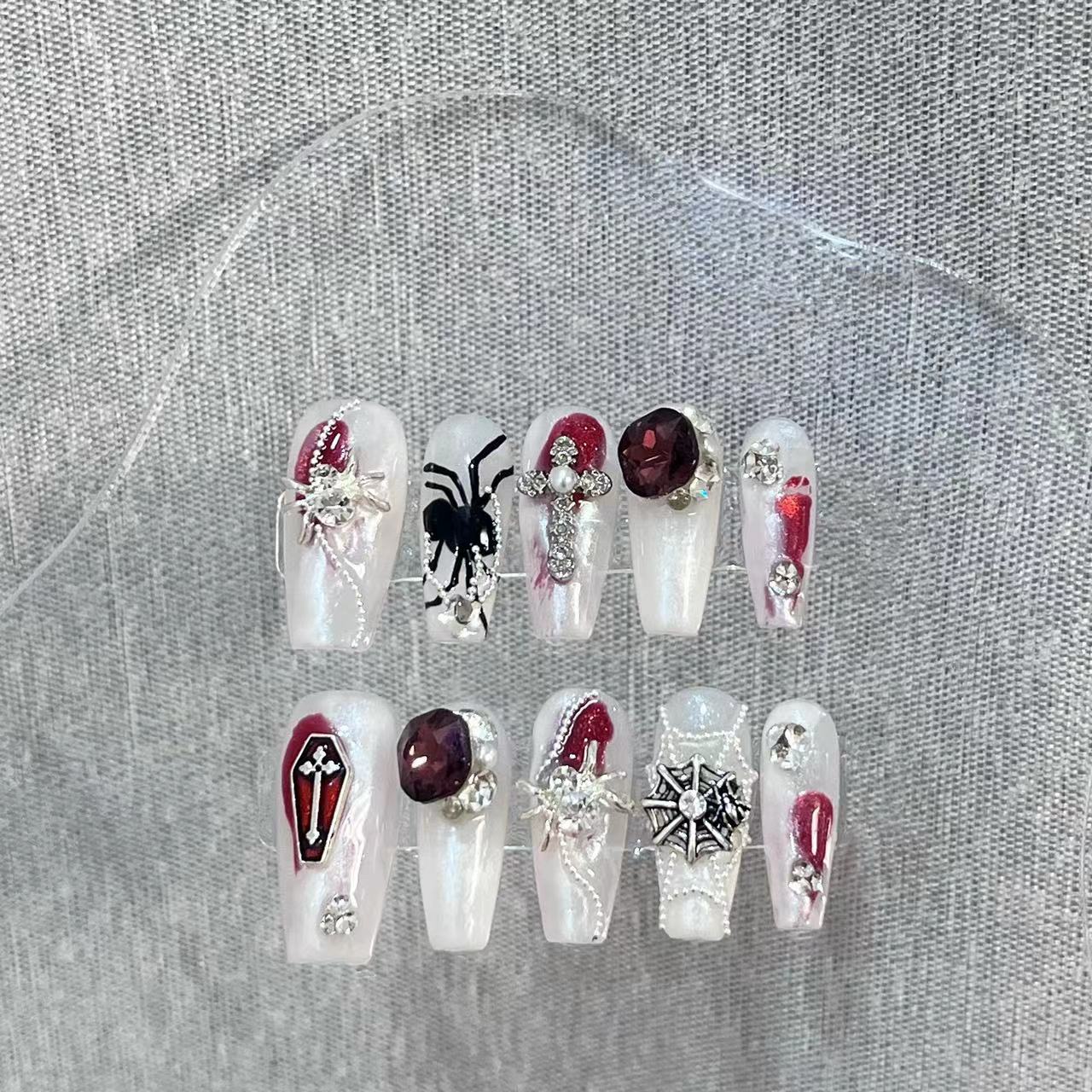 纯手工穿戴甲K9钻蜘蛛重工贴钻爆闪穿戴甲可拆卸重复使用光疗甲片