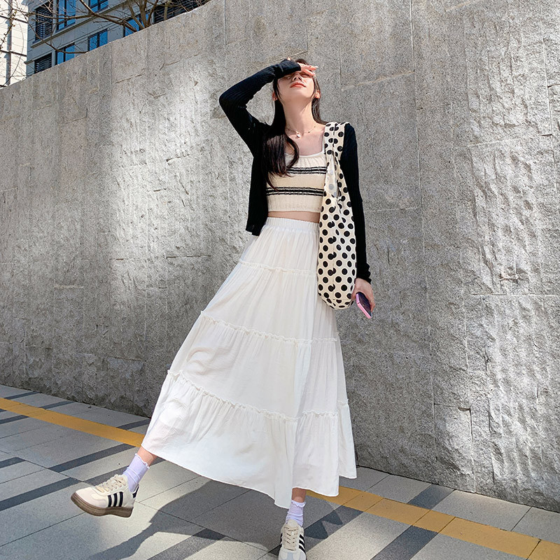 白色蛋糕裙女春夏新款高腰小个子气质仙女中长款a字半身裙