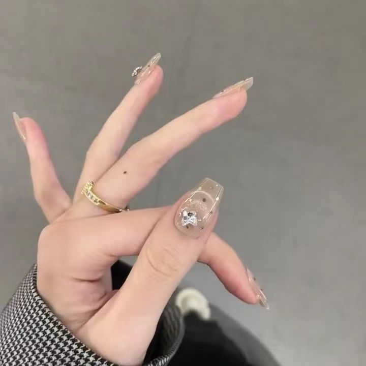 手工穿戴甲春夏清透氛围感温柔裸色波点ins风美甲工厂直发成品甲