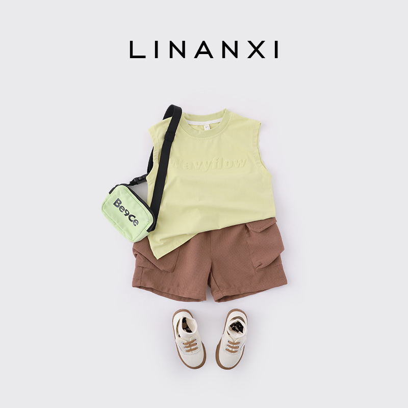 24年夏季新款儿童无袖时尚背心立体字母压花