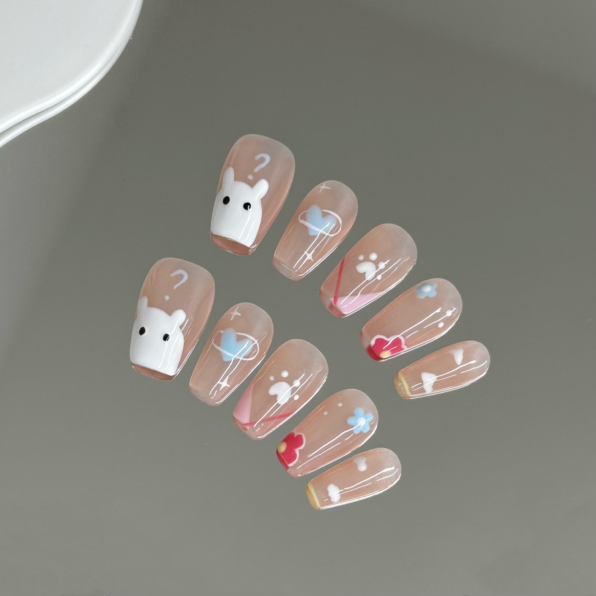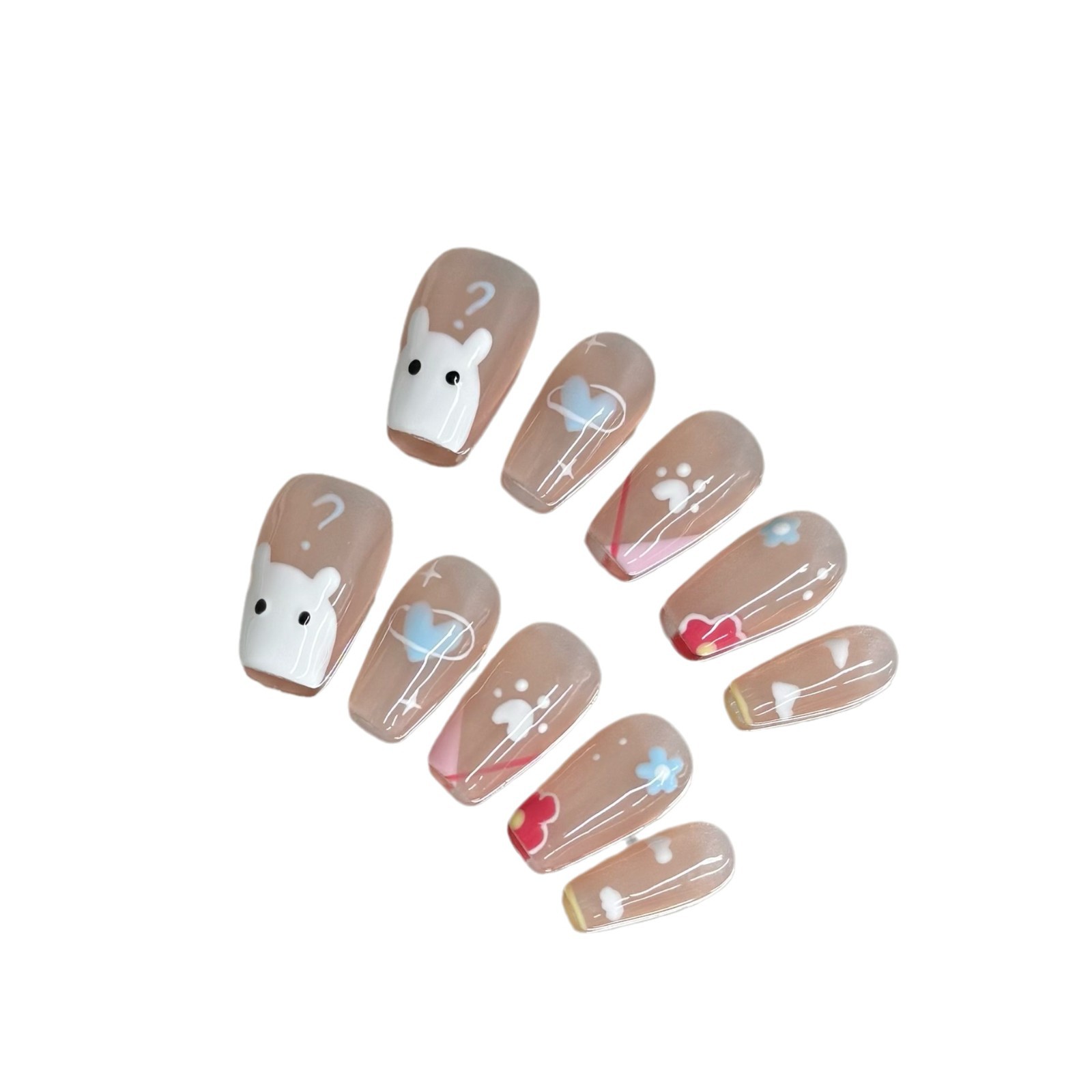 手工穿戴甲卡通可爱手绘涂鸦狗狗简约ins风显白可拆卸美甲贴片