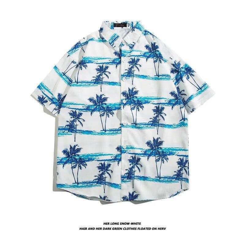 夏威夷冰丝短袖衬衫男生夏季美式潮牌痞帅花衬衣宽松百搭开衫上衣