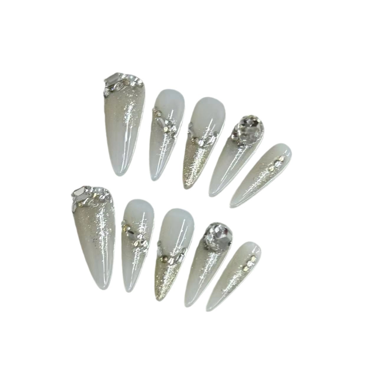 纯手工穿戴甲闪钻千金轻奢亮片气质高级感透亮清新美甲贴片成品