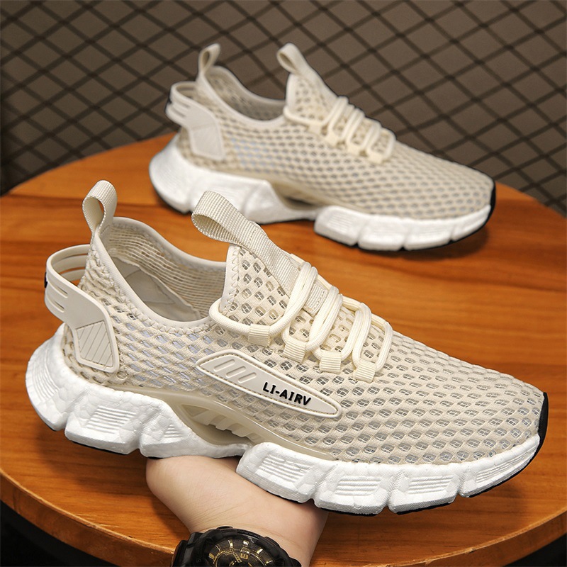 夏季男士新款透气网布鞋青少年时尚潮流休闲潮鞋真爆米花运动单鞋