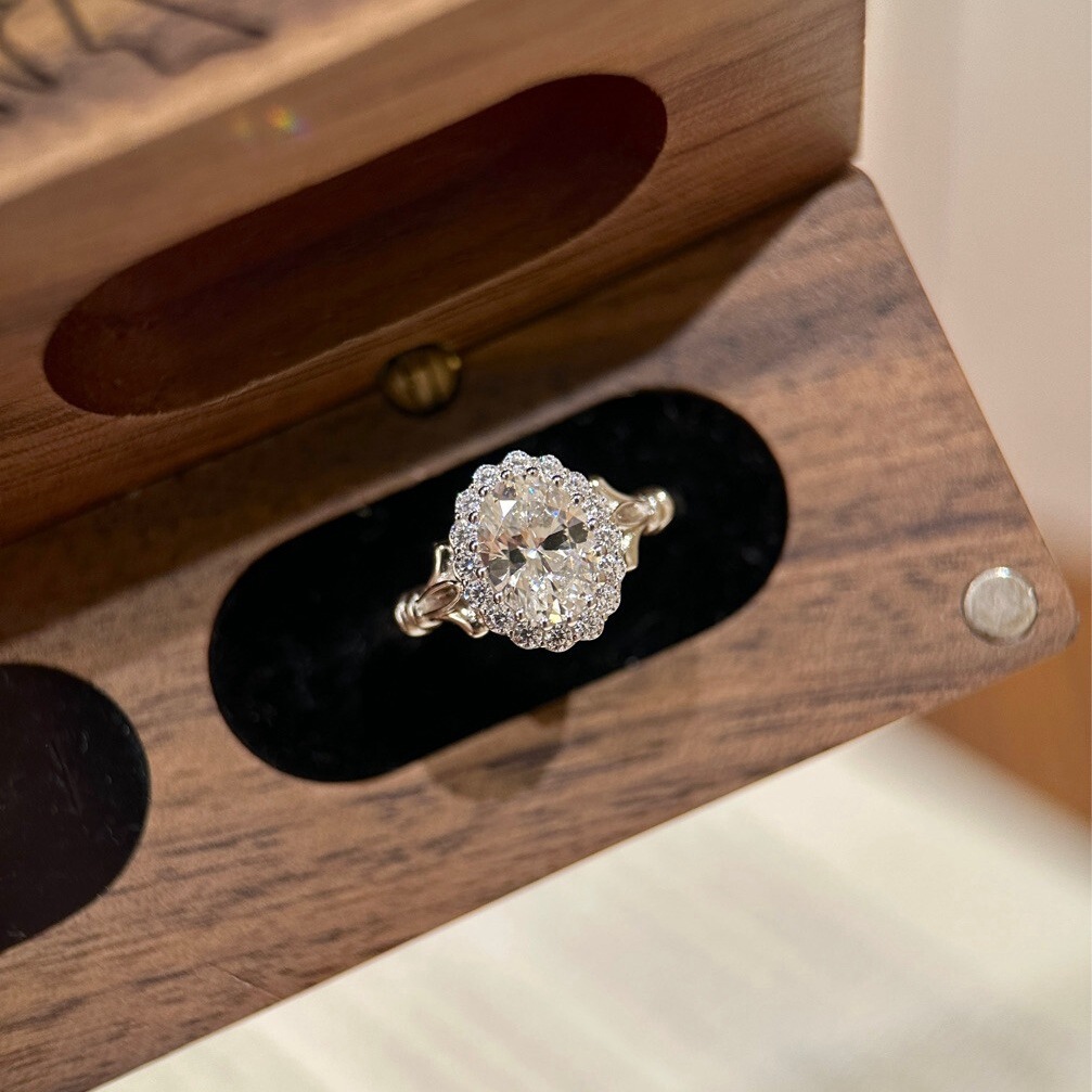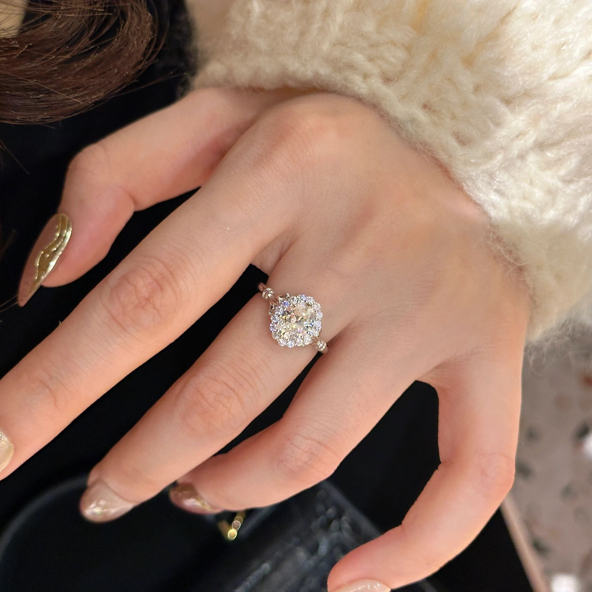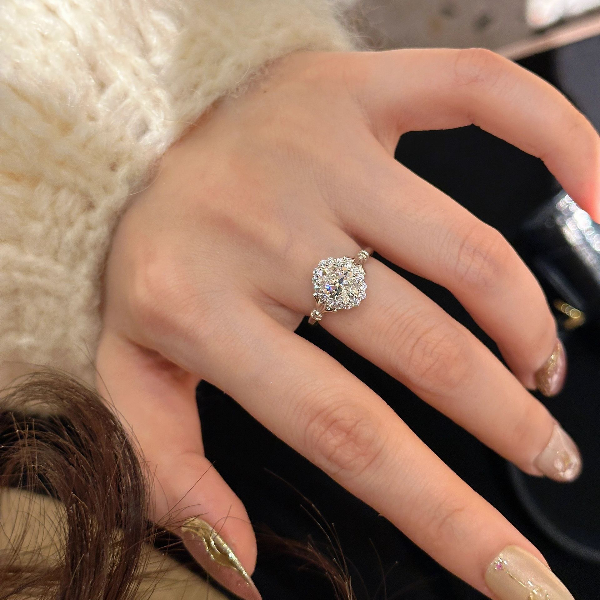 S925纯银手捧鲜花造型婚礼豪镶鸽子蛋戒指精致高级奢华珠宝感钻戒