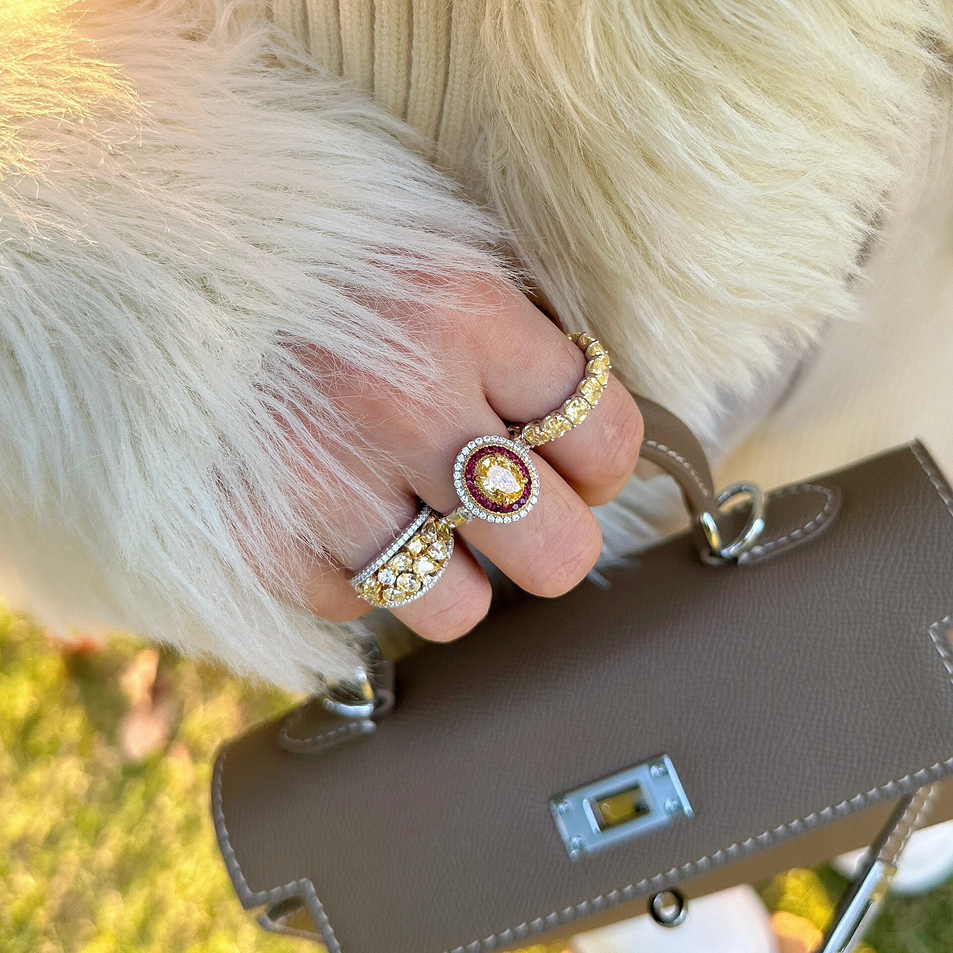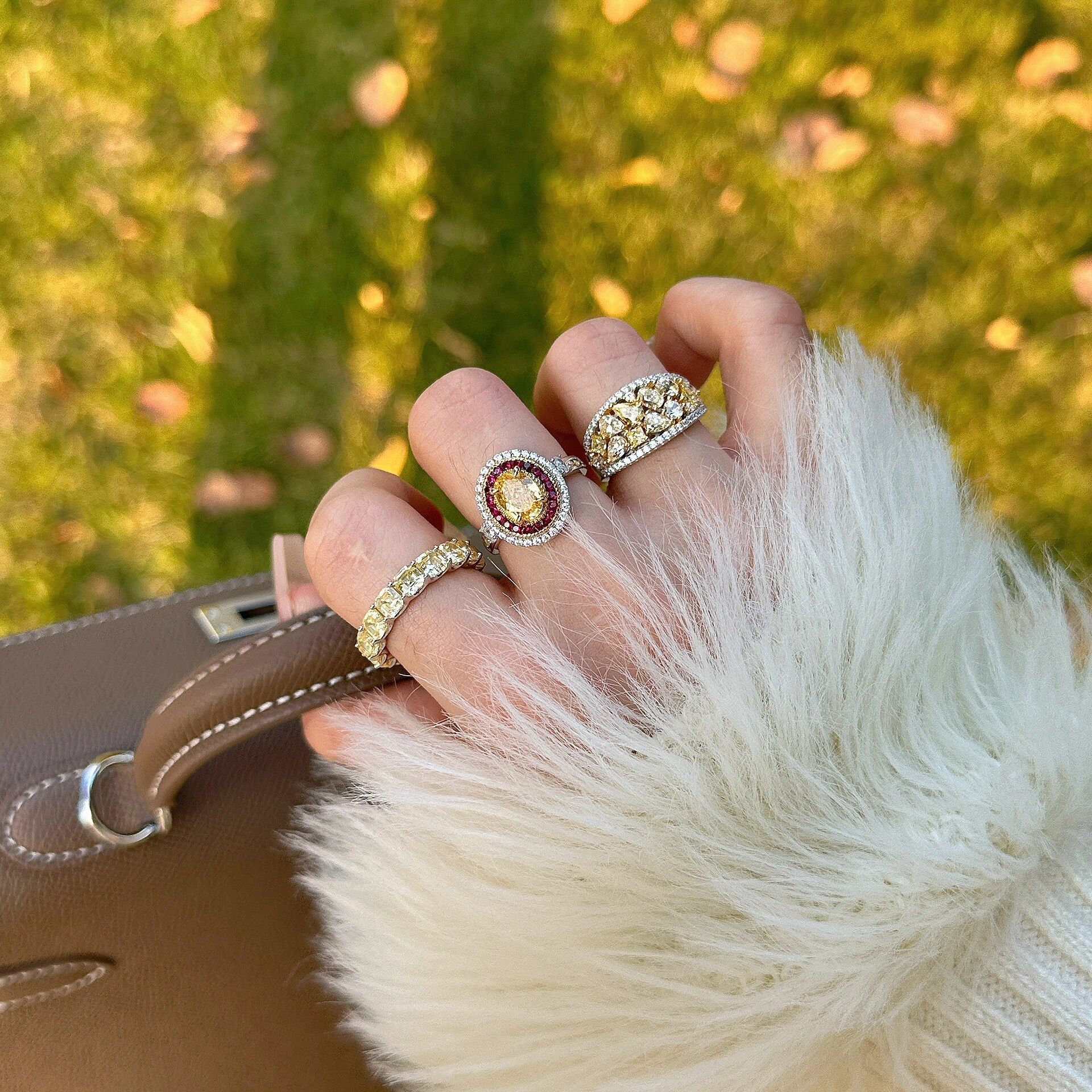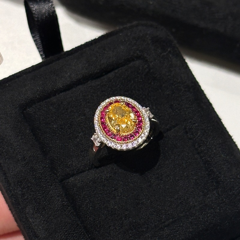 S925纯银高碳钻轻奢排钻满圈戒指合集名媛叠戴鸽子蛋黄钻招财戒指