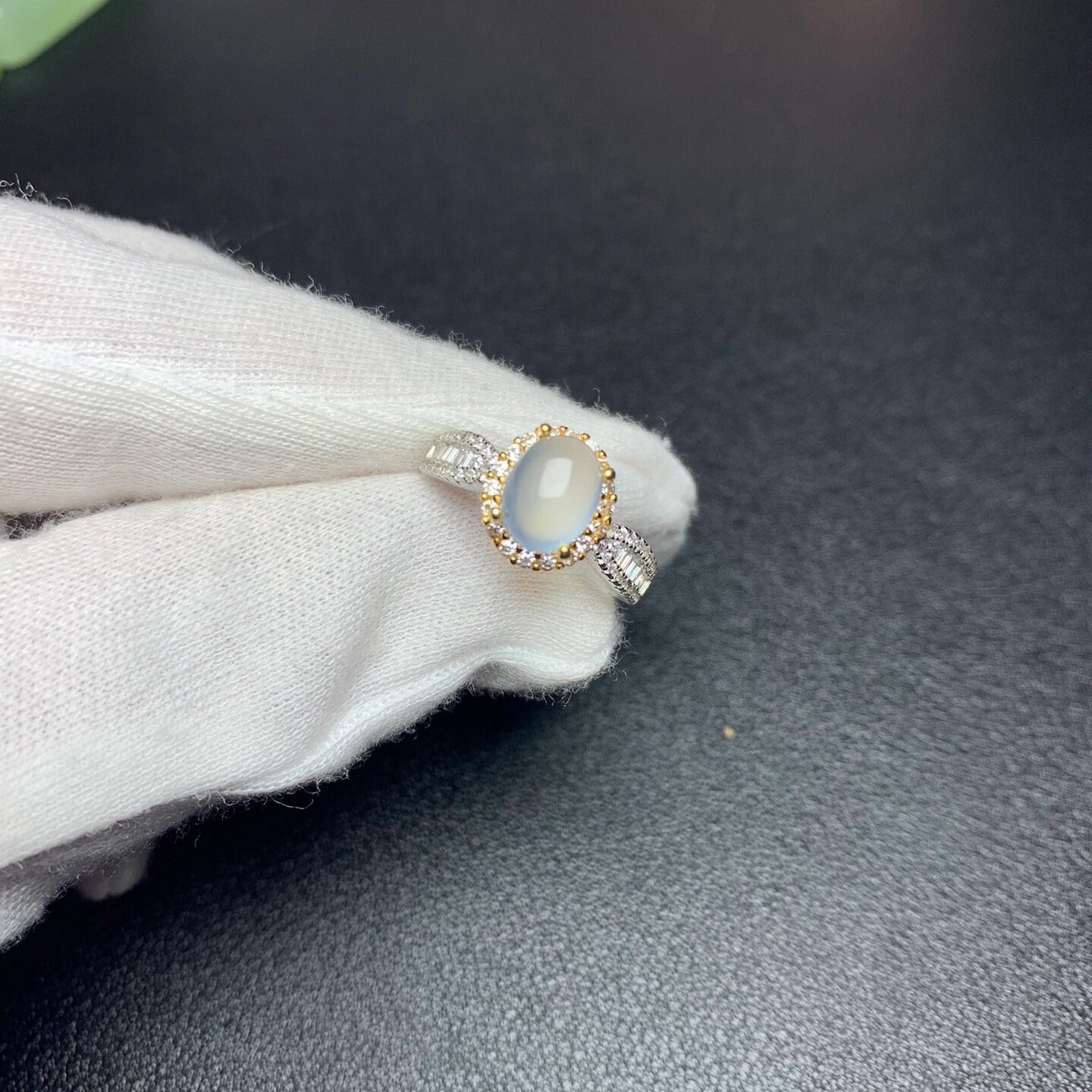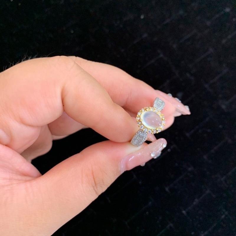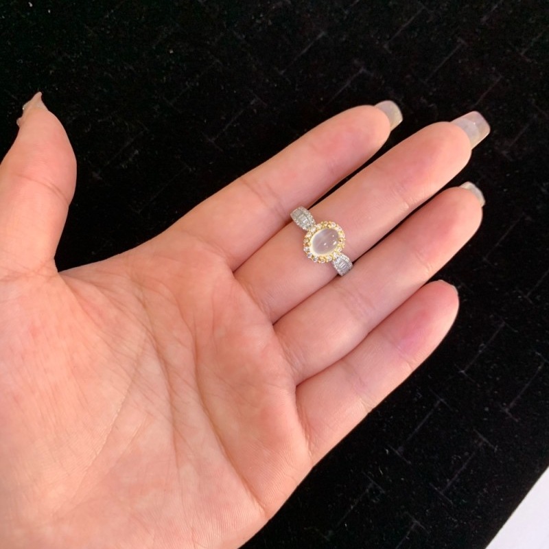 天然岫玉白冰料戒指S925银镶嵌小众高级时尚百搭新中式可调节指环