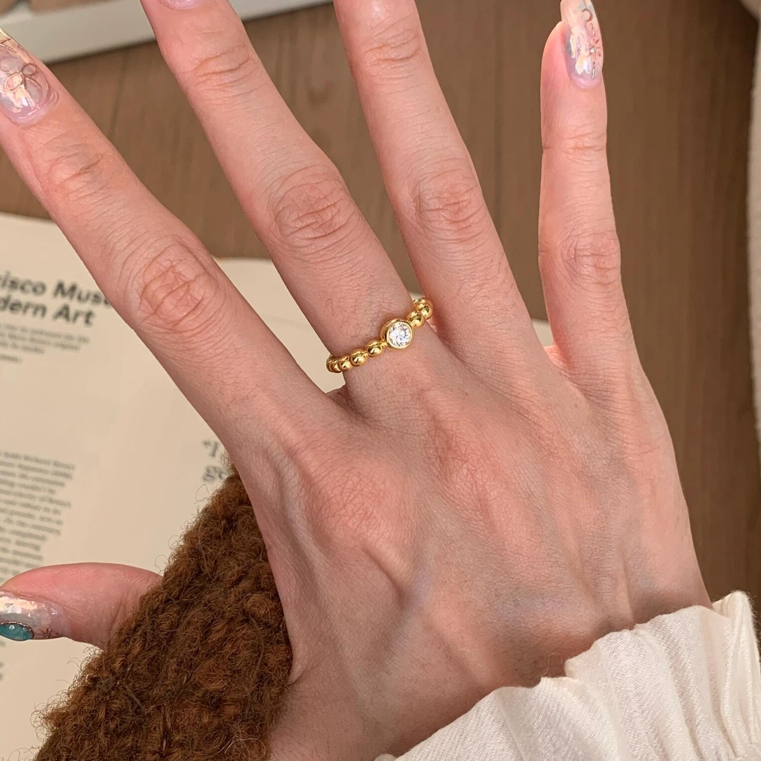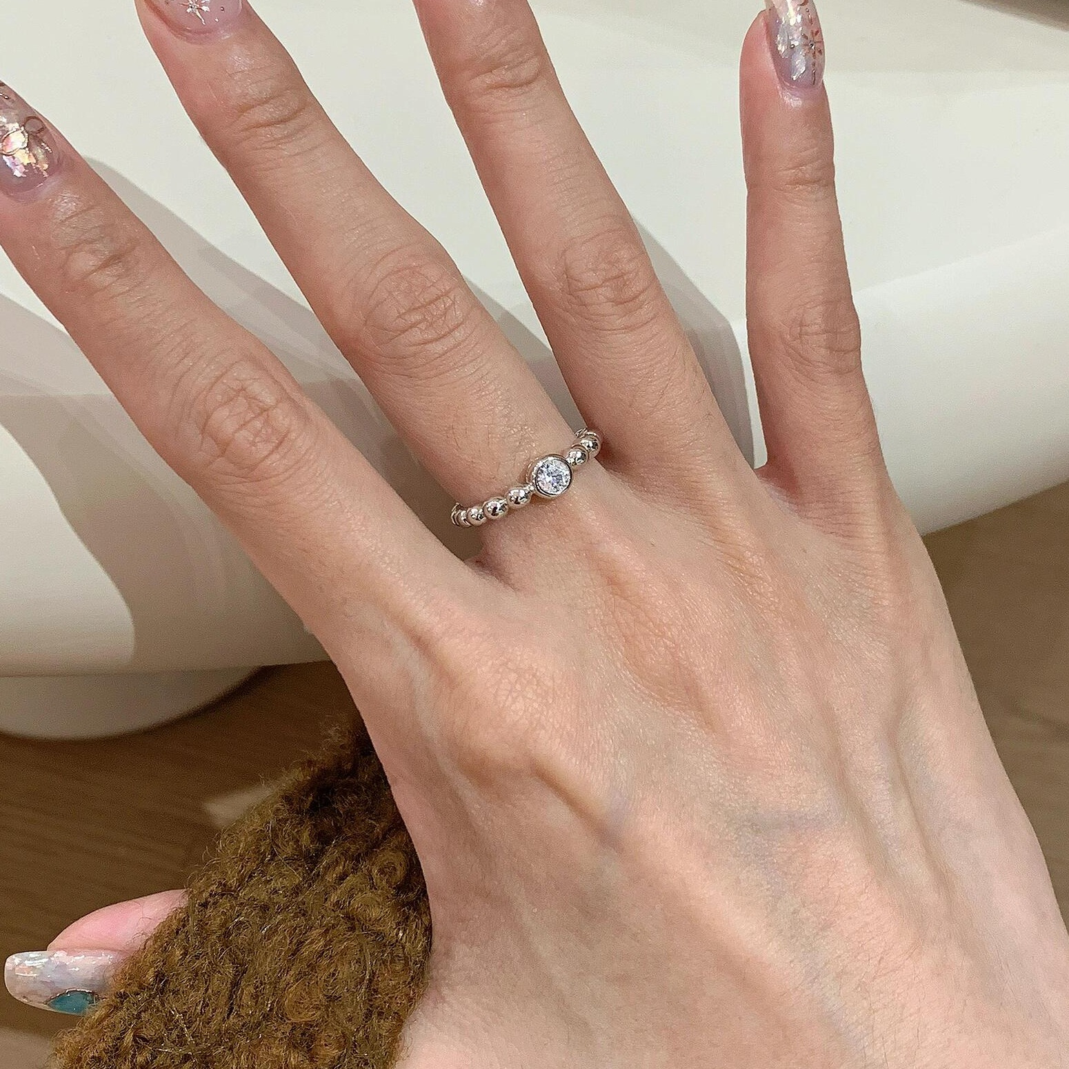S925纯银中古风经典泡泡钻戒指圆珠单钻小众高级感精致叠戴钻戒女