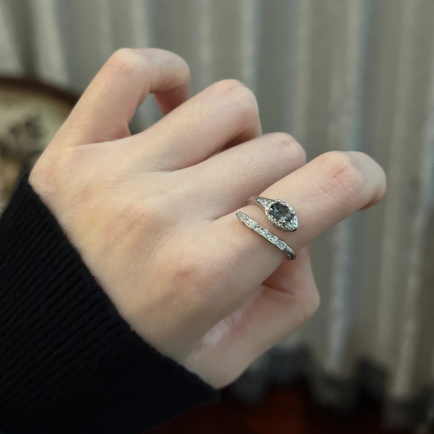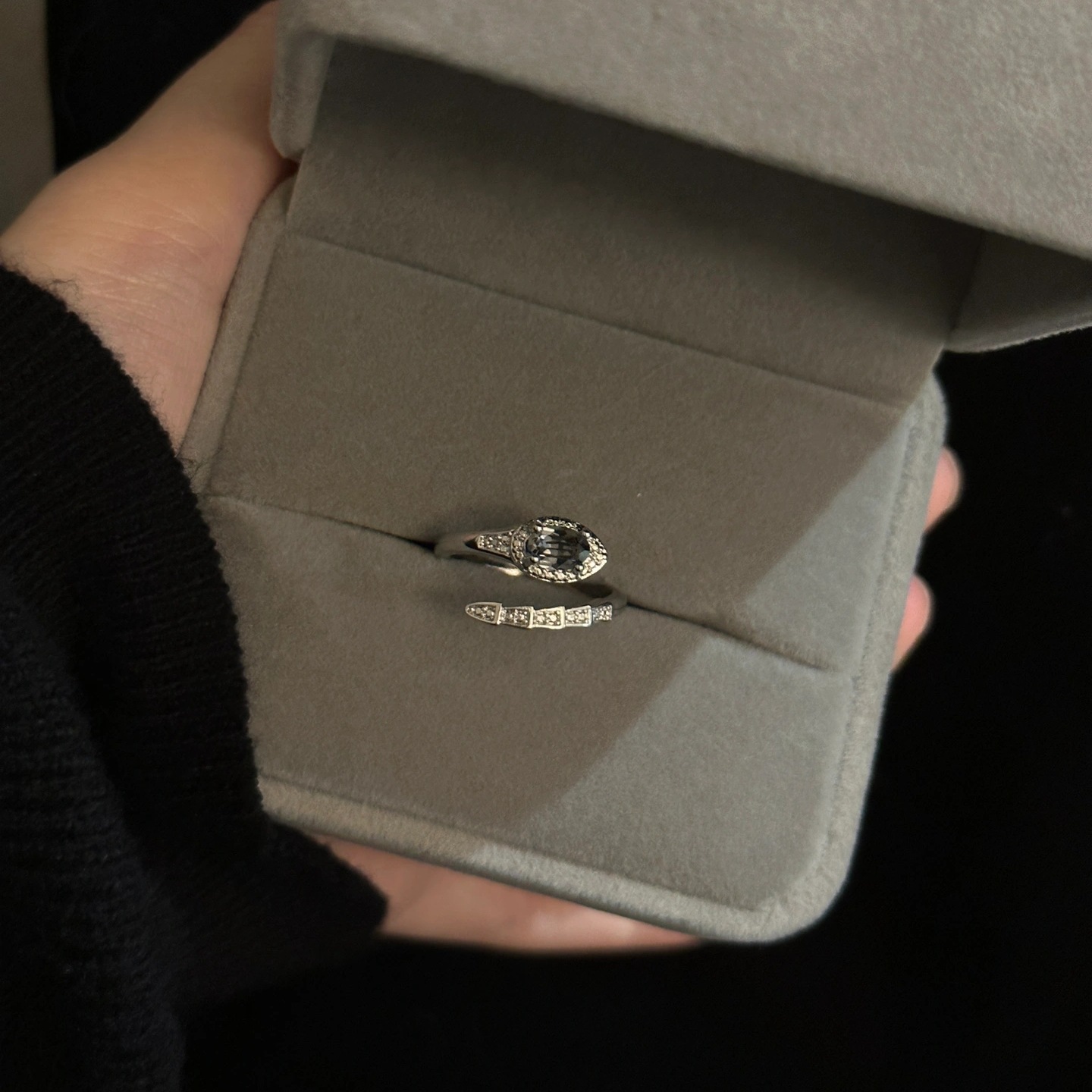 S925银小众设计ins缠绕灵蛇戒指镶钻百搭冷淡风潮酷个性食指戒环