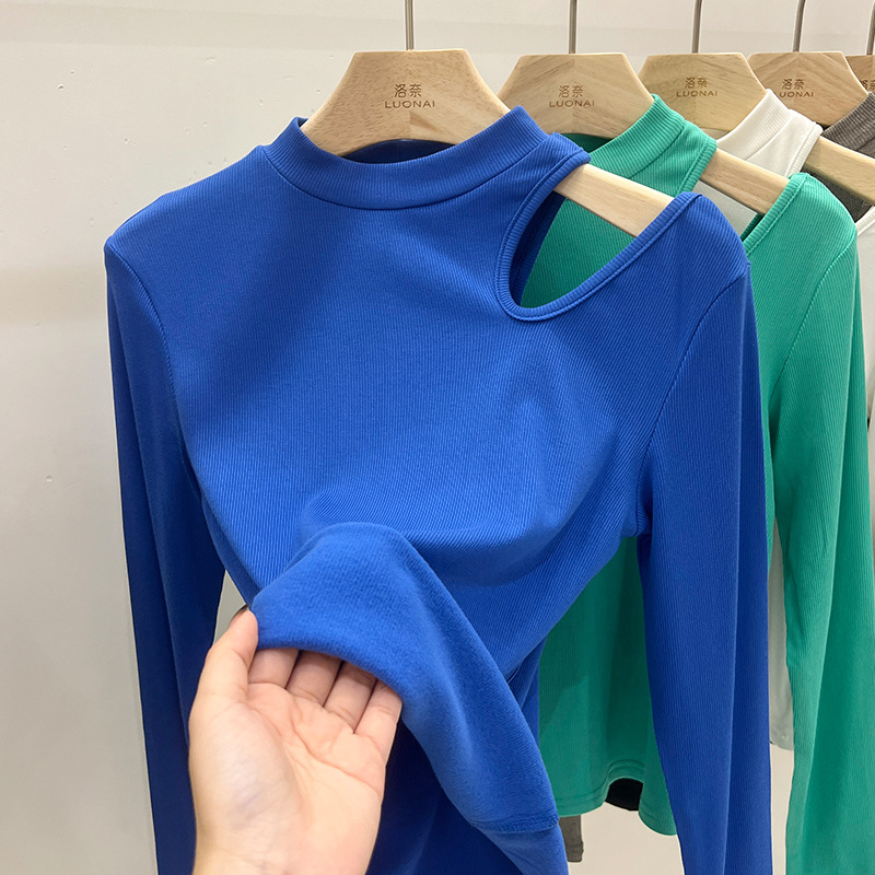 欧货立领打底衫女设计感小众春装新款别致镂空上衣内搭磨毛t恤女