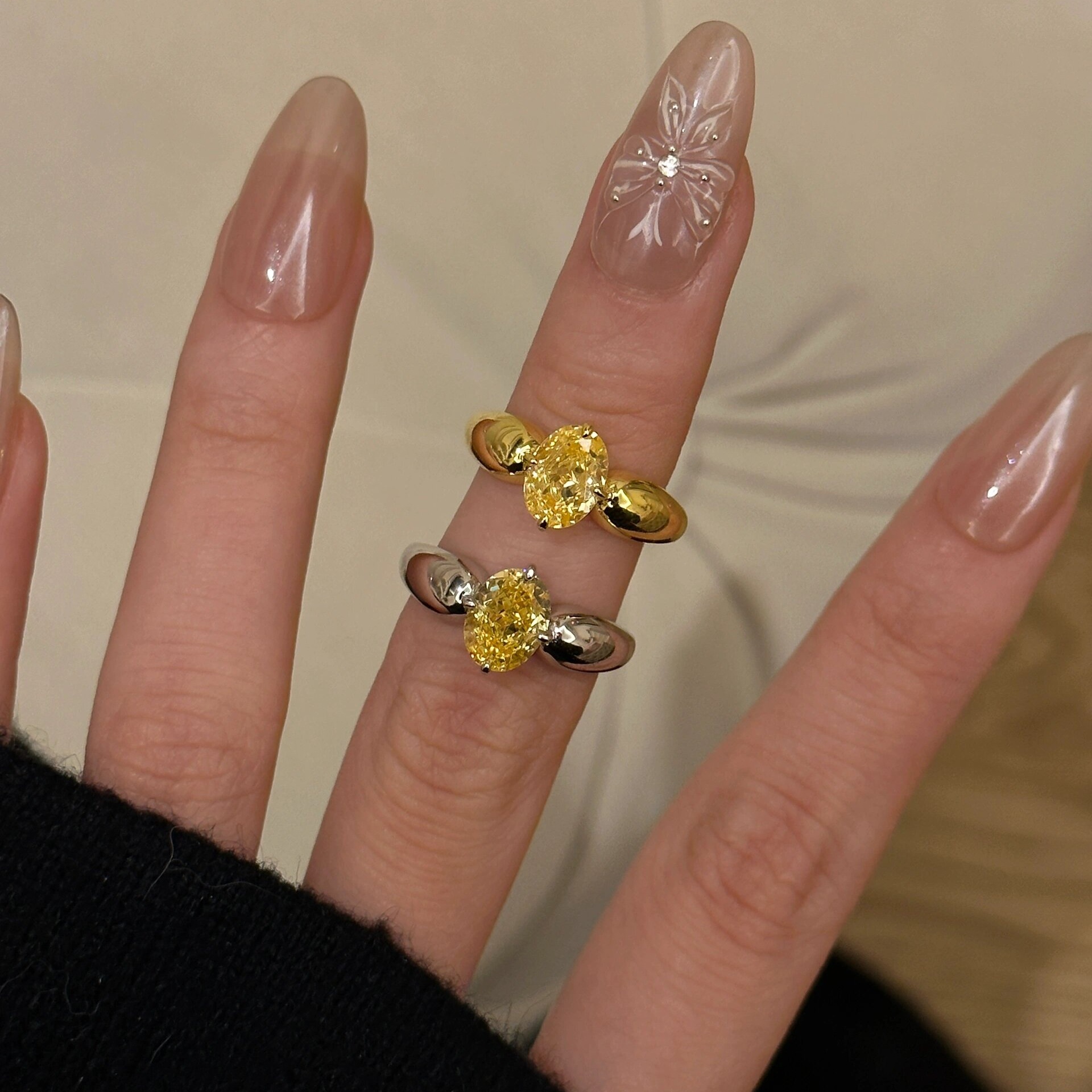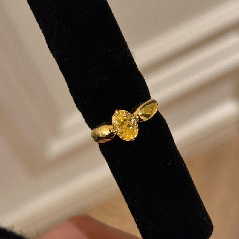 S925纯银招财黄钻戒指小蜜蜂椭圆蛋形高碳钻戒小众设计轻奢高级感