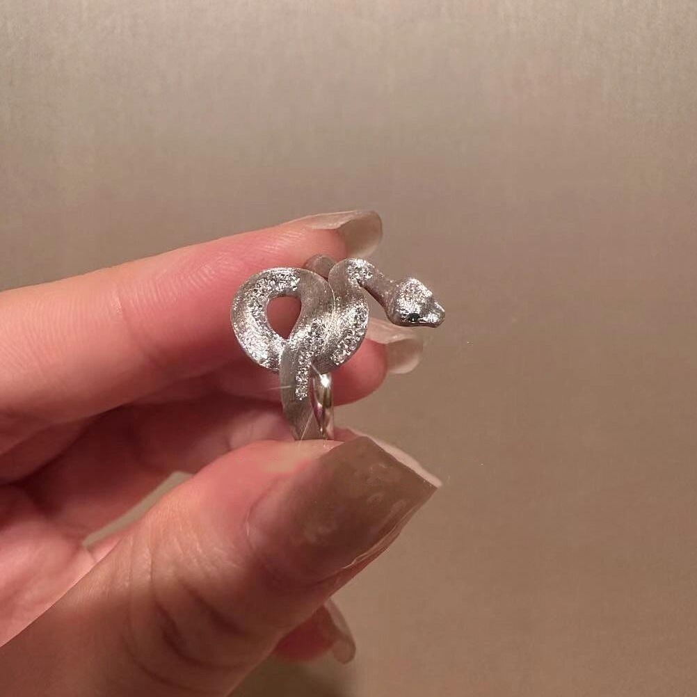 S925纯银灵蛇拉丝缠绕戒指vintage中古风小众独特精致高级感指环