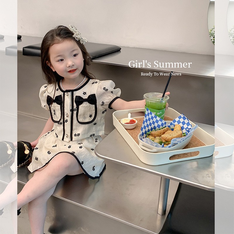 韩版夏季新款女童甜美小香风套装儿童时髦短袖短裙两件套1139