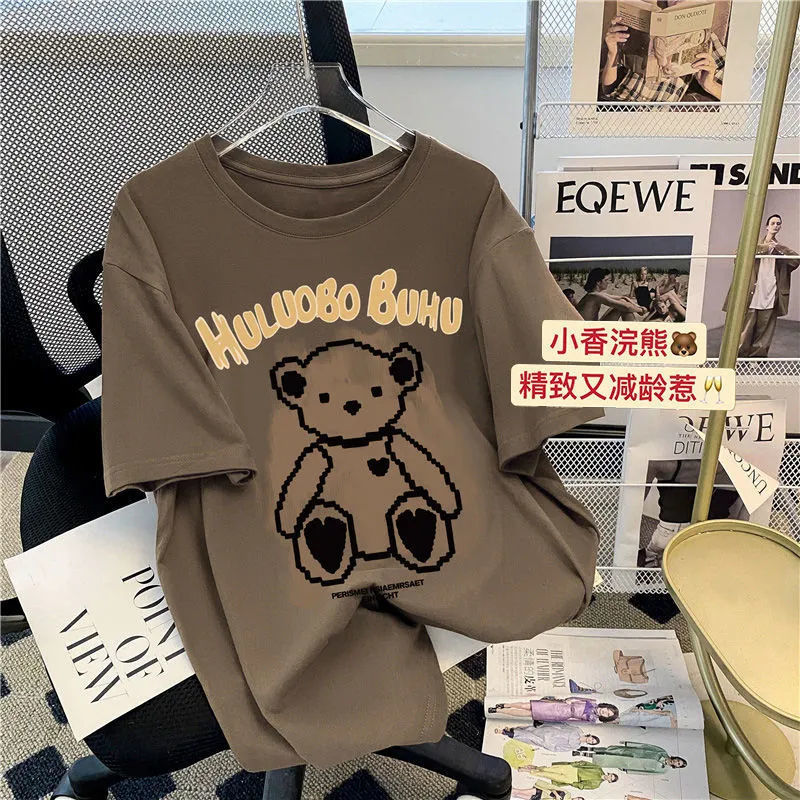 小熊纯棉短袖T恤女夏季装新款韩版宽松百搭大码显瘦上衣ins潮