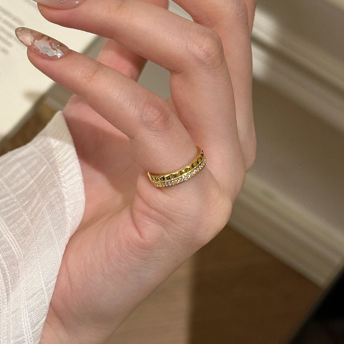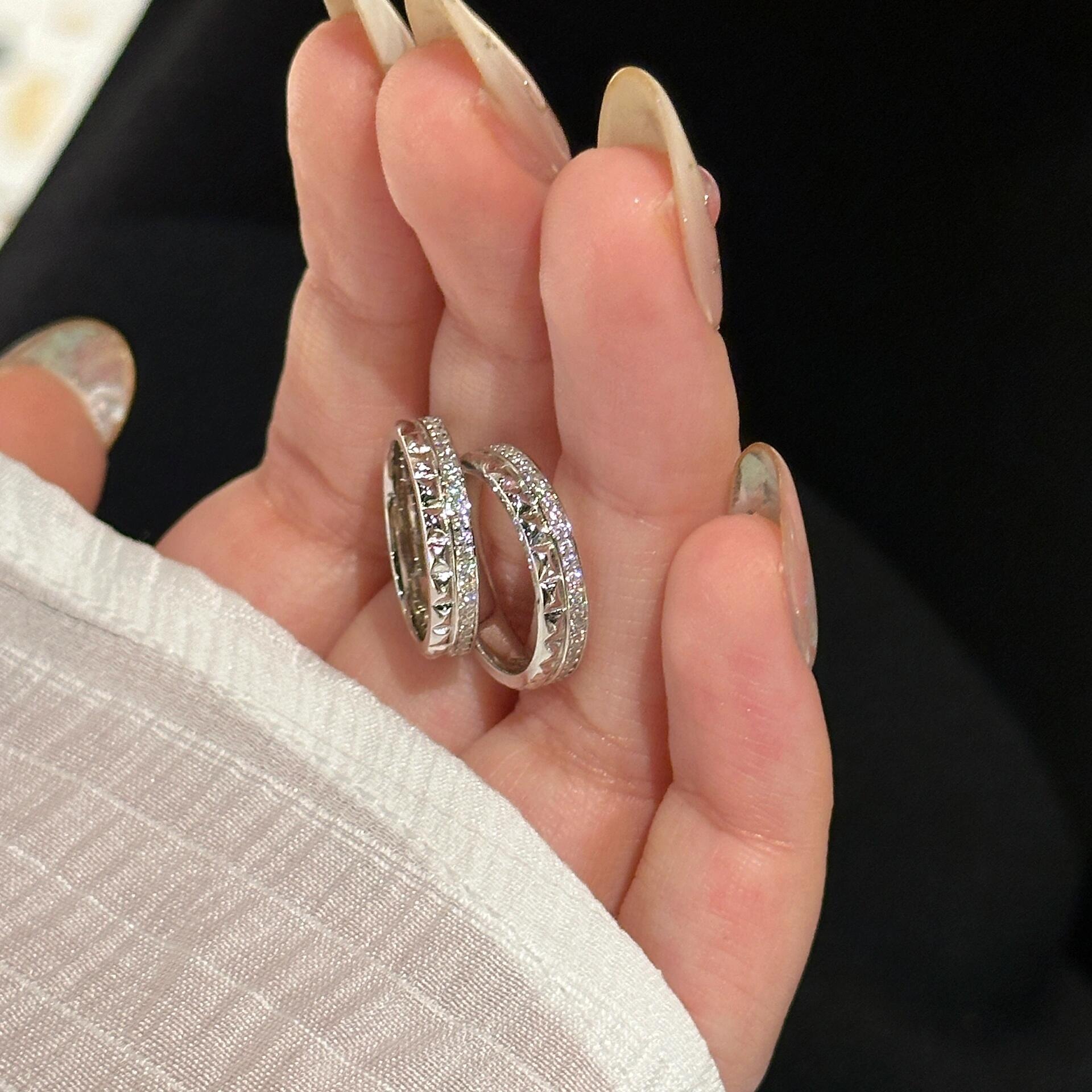 菱格纹尾戒半钻半素S925纯银小众高级感精致时尚轻奢简约戒指指环
