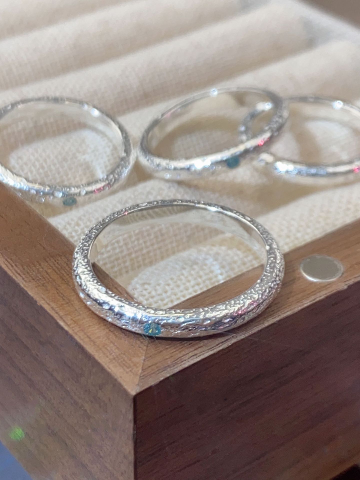 S925纯银拉丝海蓝宝石戒指女简约风小众设计个性磨砂肌理感食指戒