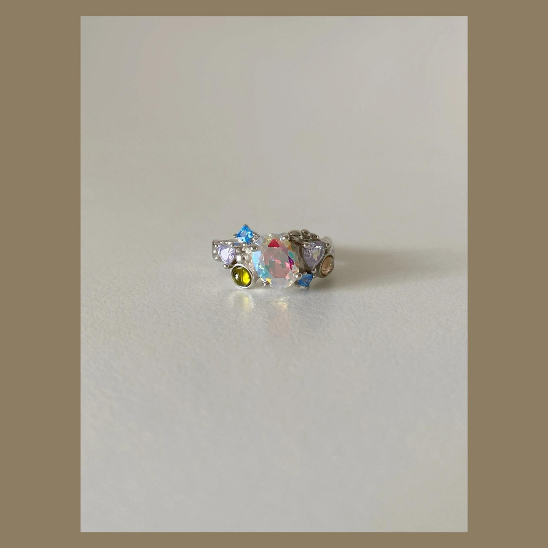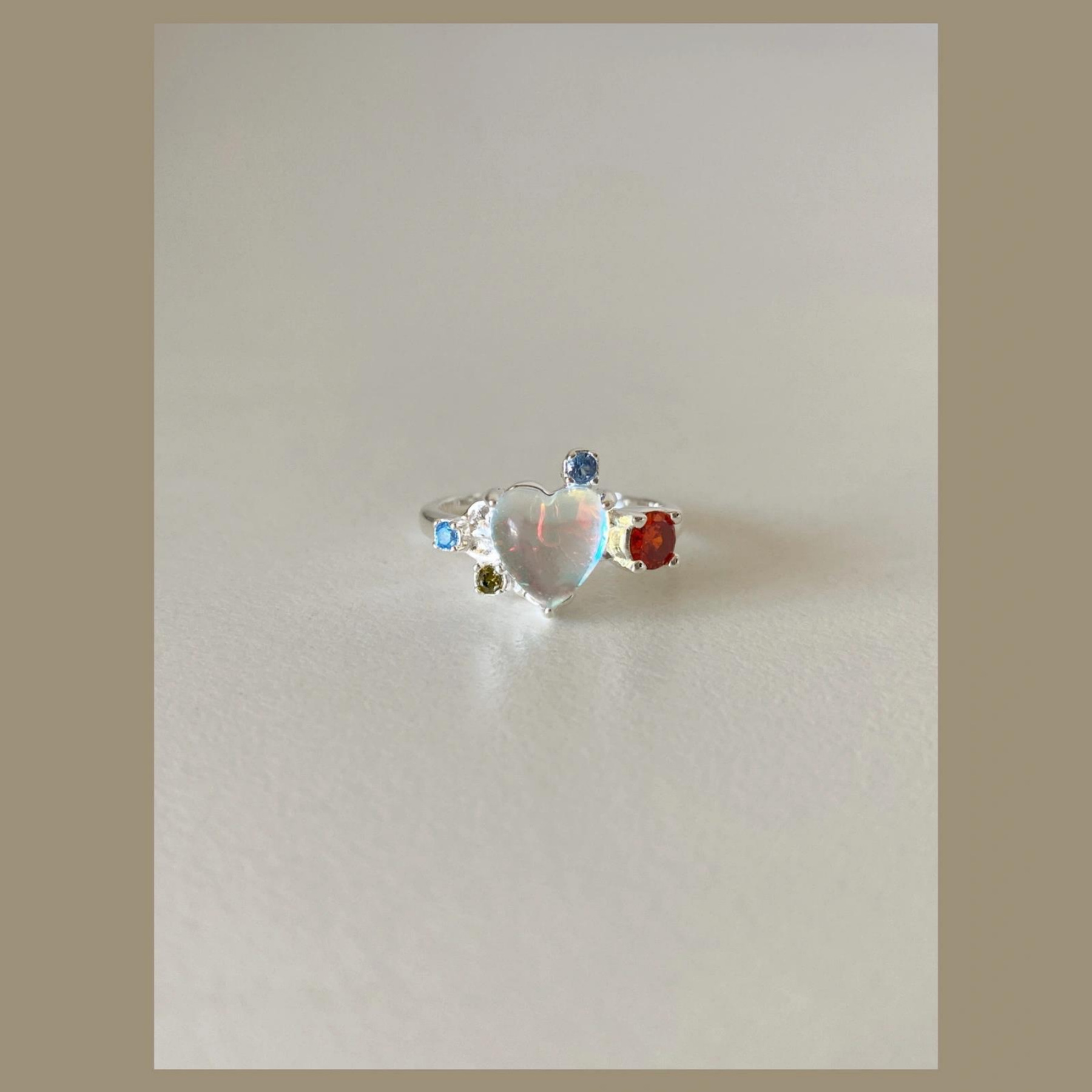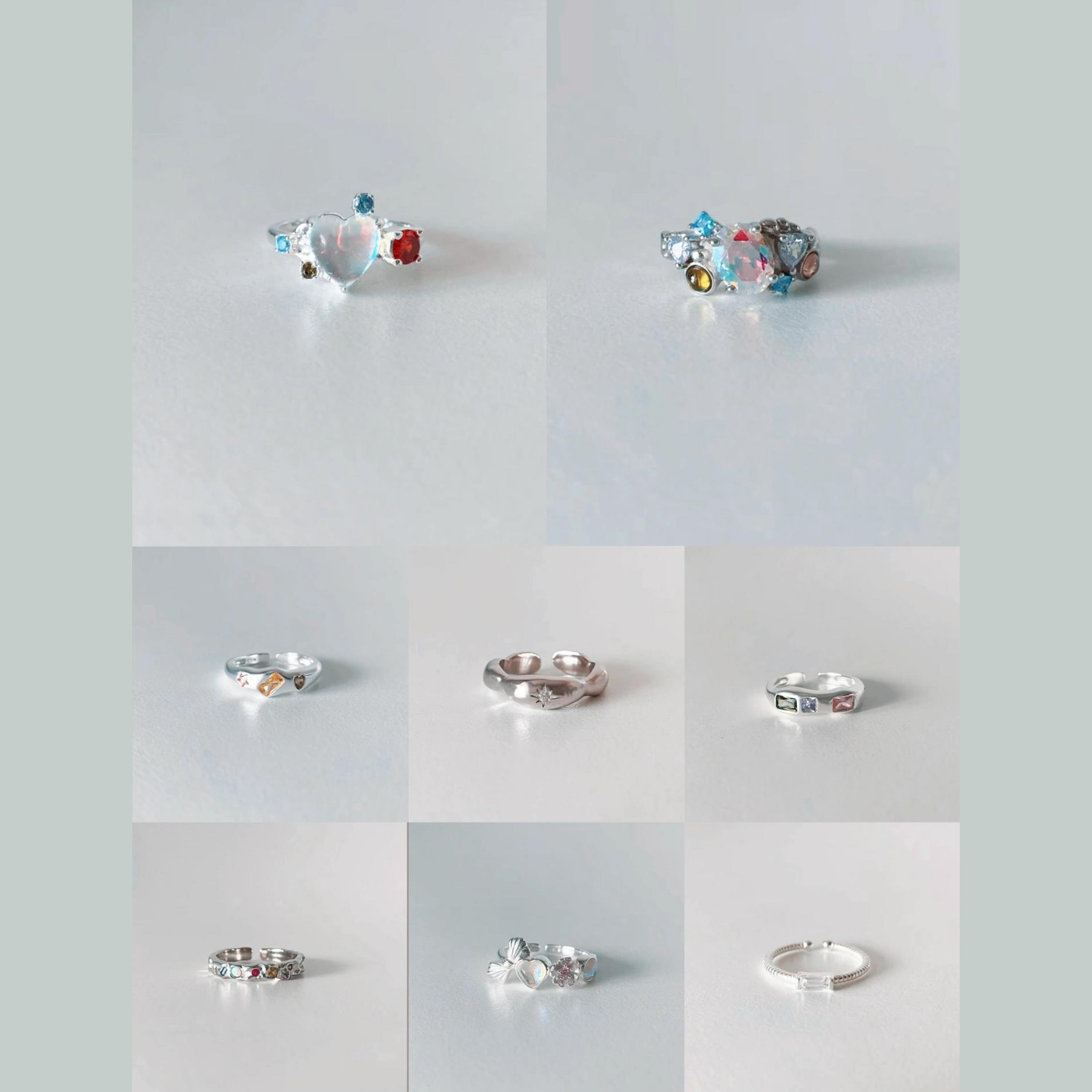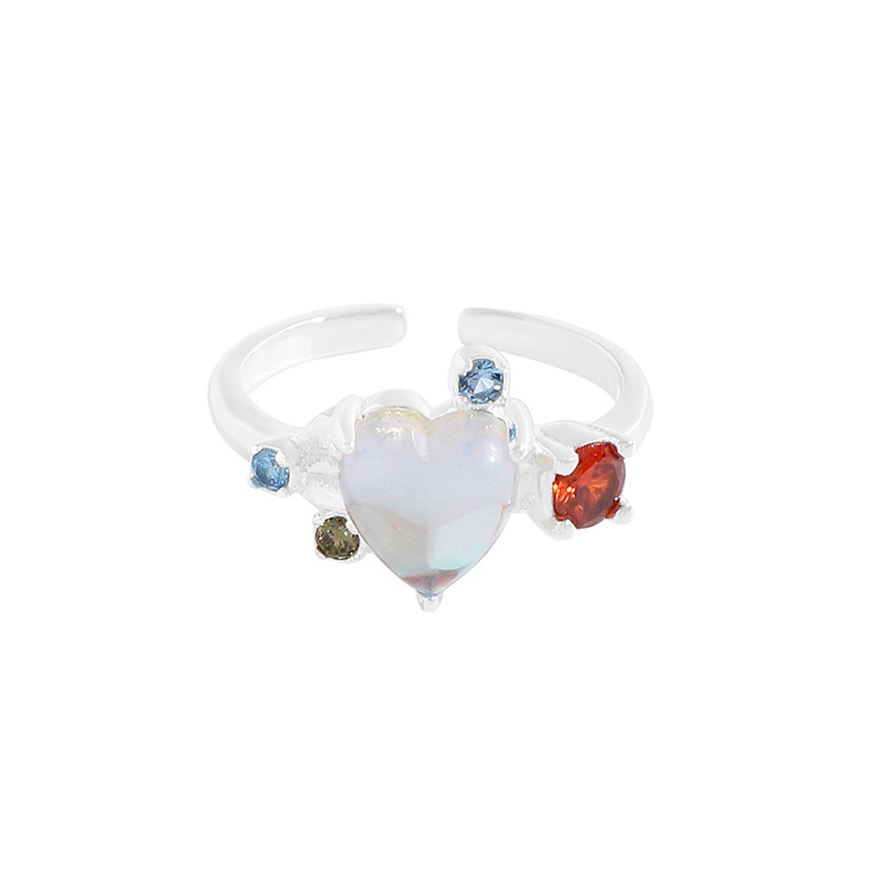 S925纯银彩色锆石欧泊月光石爱心戒指合集小众甜美设计开口指环女