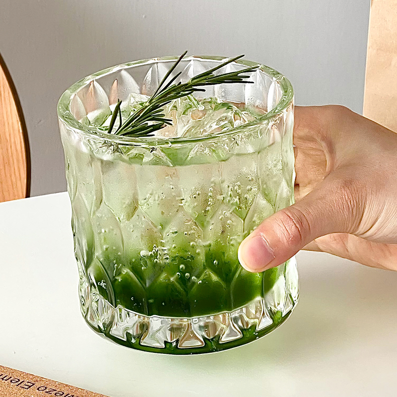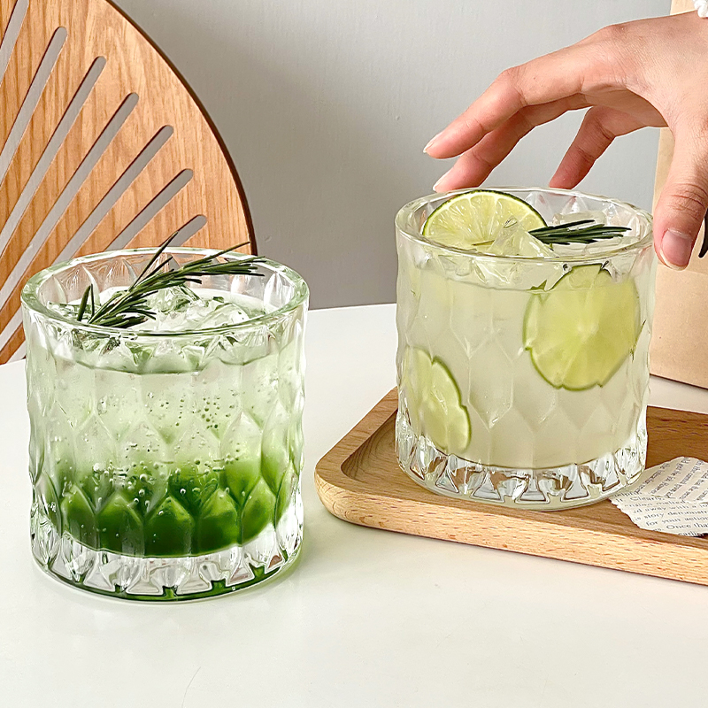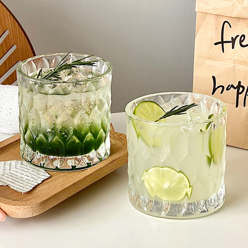 复古轻奢菱格大容量玻璃水杯子冰球杯威士忌酒杯饮料饮品杯高级感