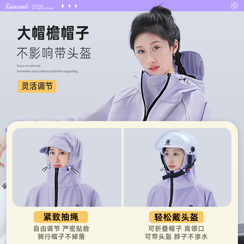 - 口袋款-香芋紫【牛津布+拉链高领防水层+魔术贴袖口】A字修身可背包