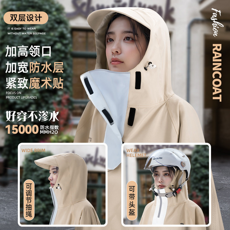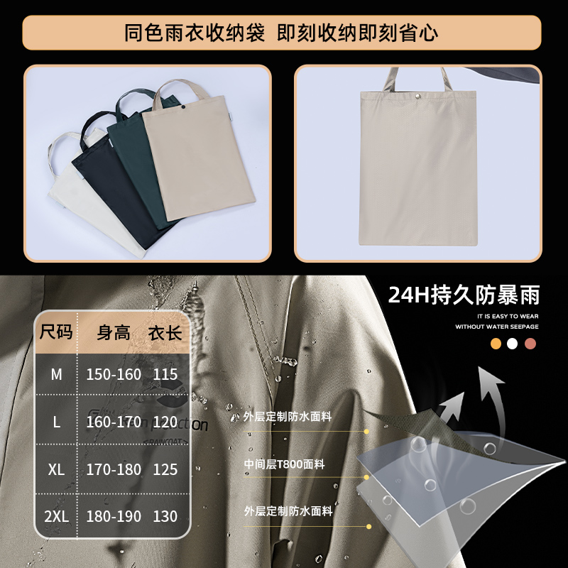 - 淡卡其【拉链领口】加长遮脚+牛津布+A字版型 (有收纳袋)