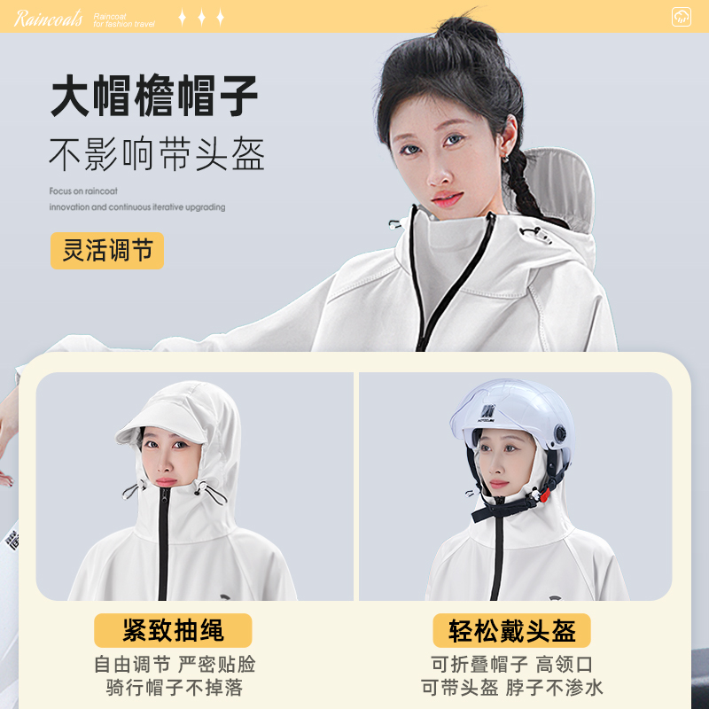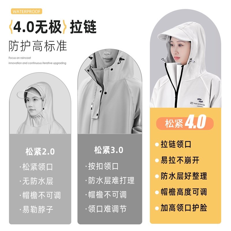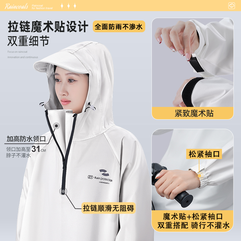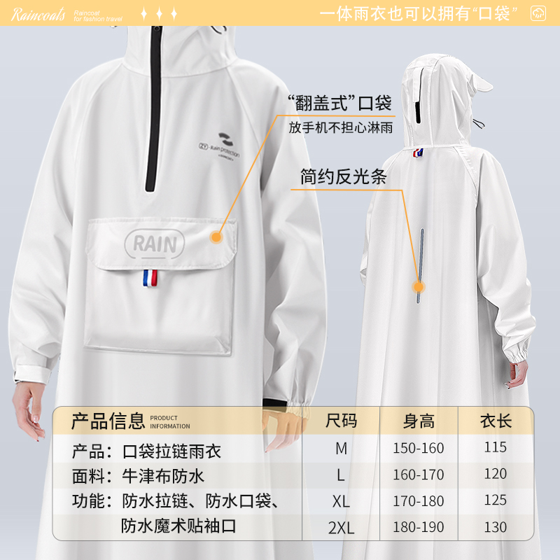 轻语白【拉链雨衣】升级口袋【牛津布+拉链高领口+魔术贴袖口】