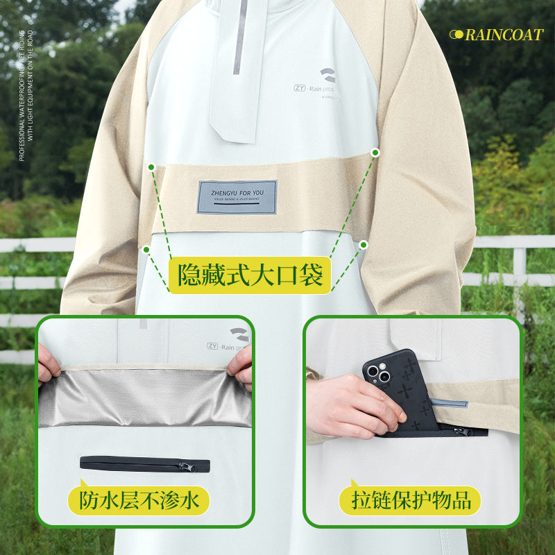 - 卡其白★速干春亚纺【隐藏口袋+魔术贴拉链领口+防灌水袖口+加长遮脚】 【有收纳包】
