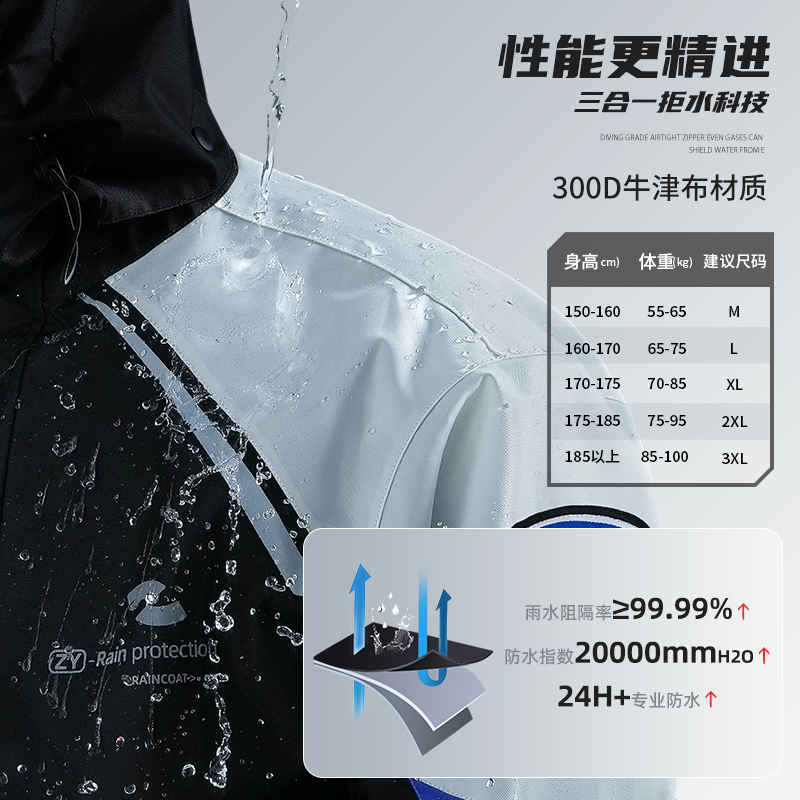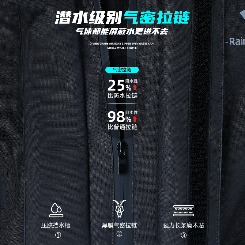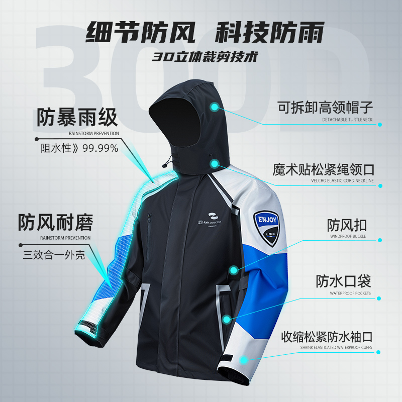 - 至尊款-机械蓝【300D牛津布+气密拉链+防风收腰扣+可拆帽子】