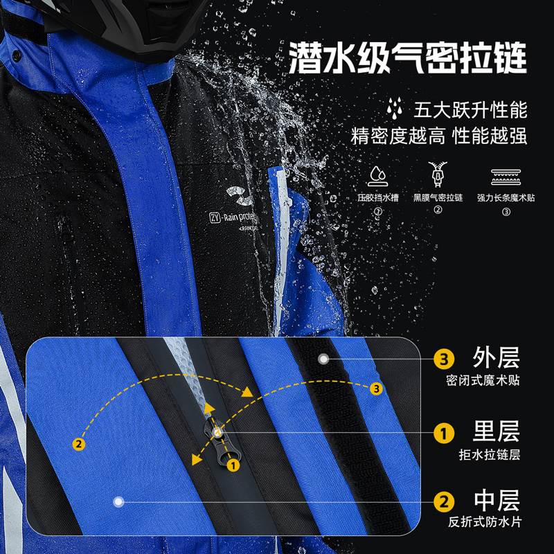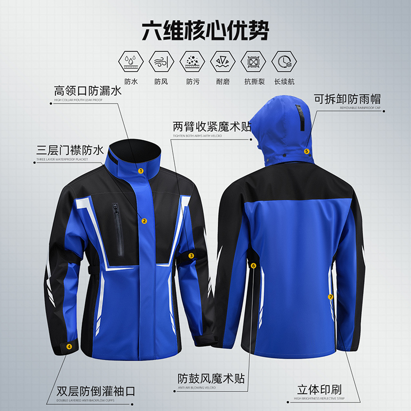 - 机械蓝★至尊款【裤子反光+300D牛津布专业防水+防风扣+高领可拆帽子+气密防水拉链】