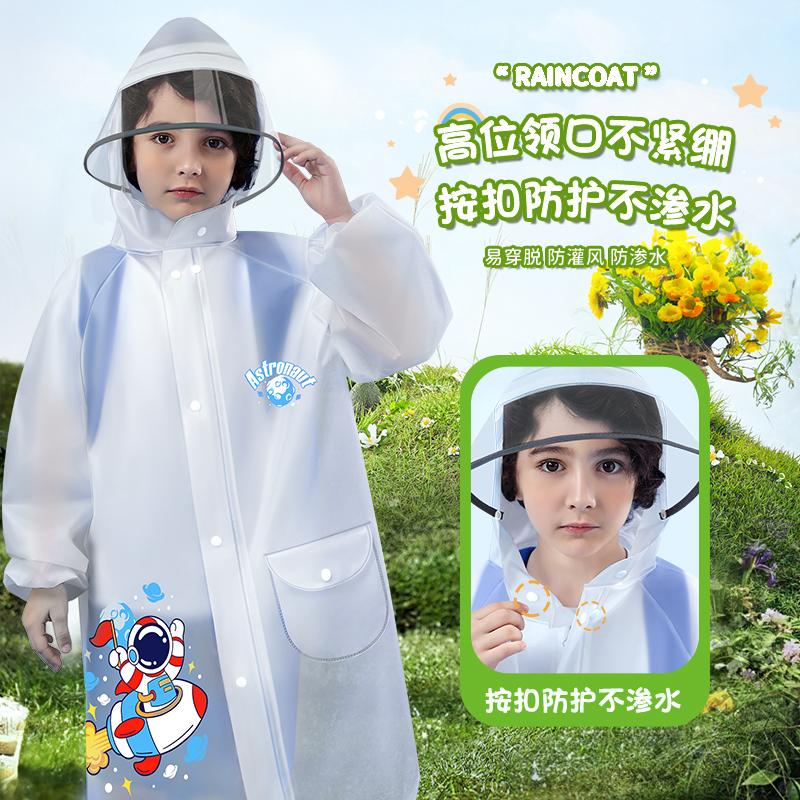 - 透明宇航员【加大帽檐+大书包位+高领口纽扣+防水拉链】