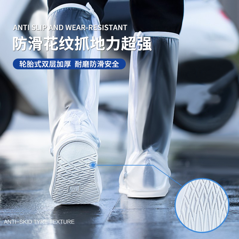 防水鞋套男款防滑高筒外穿防沙套鞋加厚摩托车骑行透明脚套雨鞋女