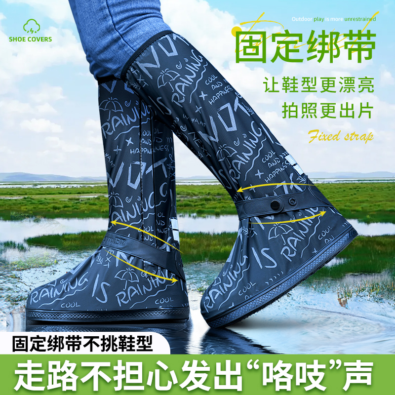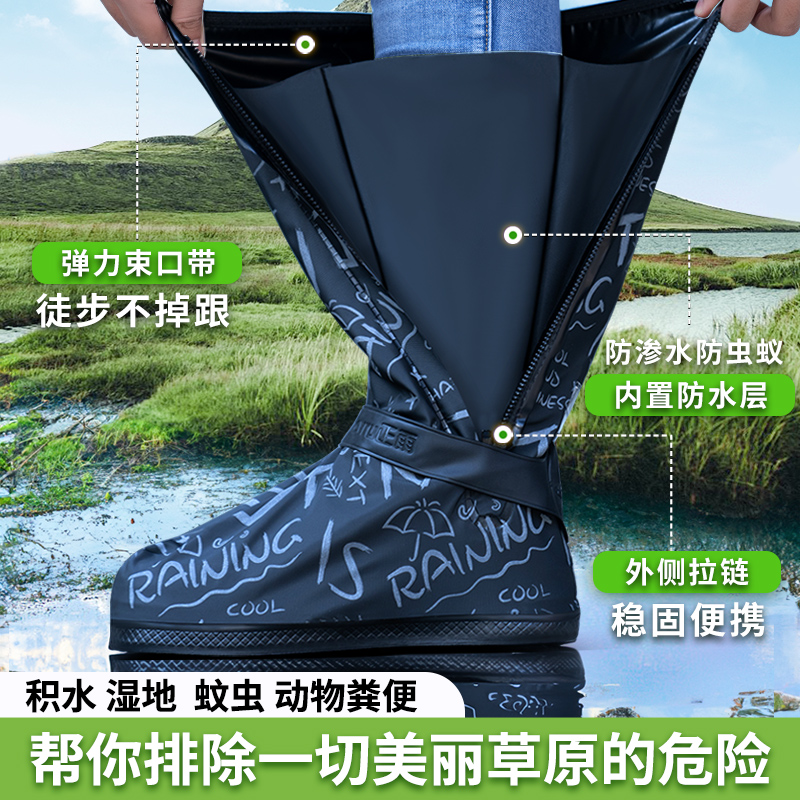 高筒防水鞋套防滑加厚耐磨下雨天登山雨鞋套成人赶海脚套雨靴旅行