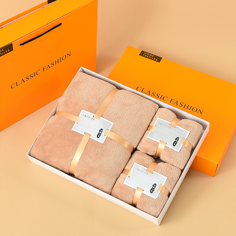 新款珊瑚绒三件套礼盒装活动礼品婚庆生日礼盒毛巾浴巾伴手礼批发