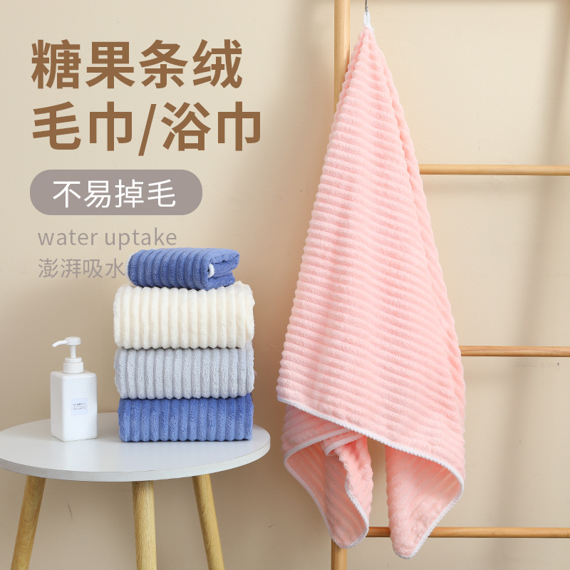 批发糖果条绒毛巾珊瑚绒柔软吸水大浴巾速干加厚擦脸家用洗脸毛巾