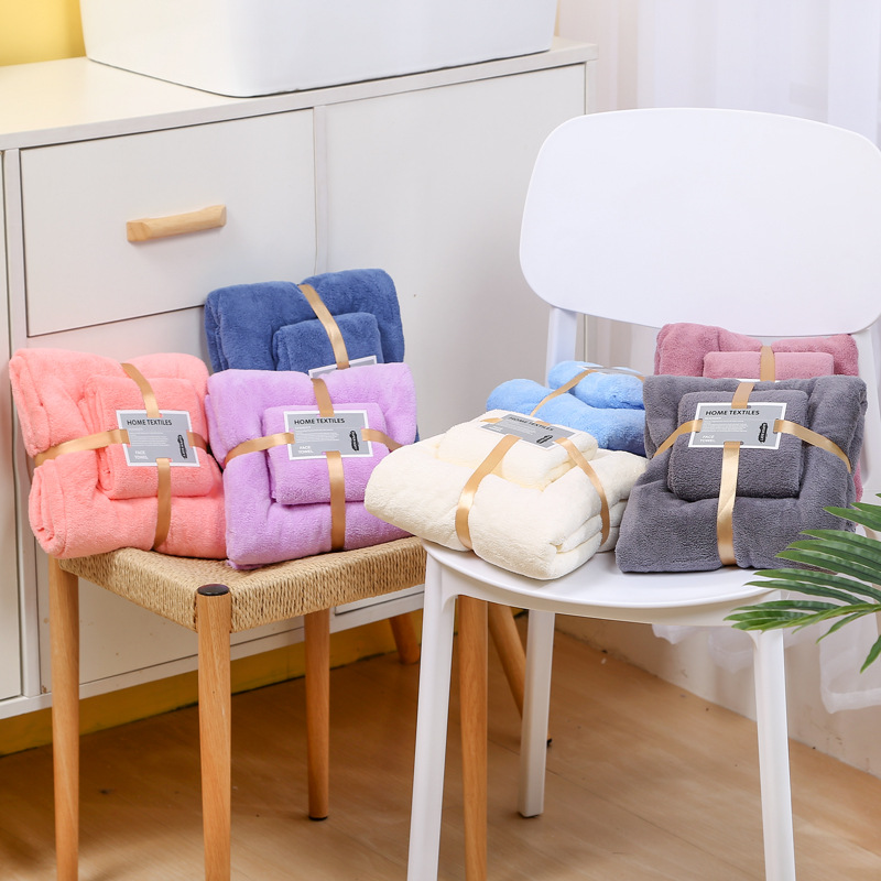 珊瑚绒子母套巾毛巾浴巾柔软吸水加厚沙滩巾套装礼品