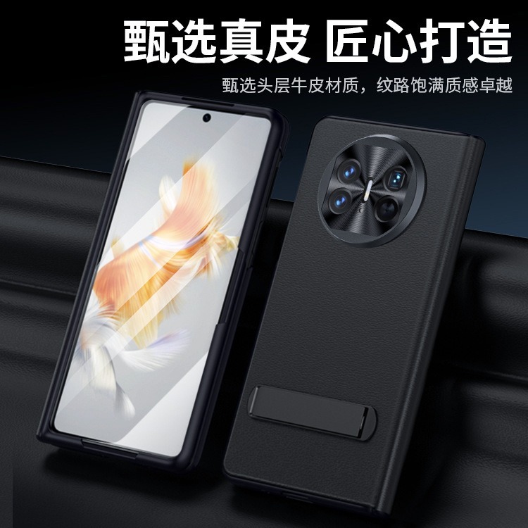 适用华为MateX5手机壳膜一体中轴全包铰链支架真皮HUAWEI保护套