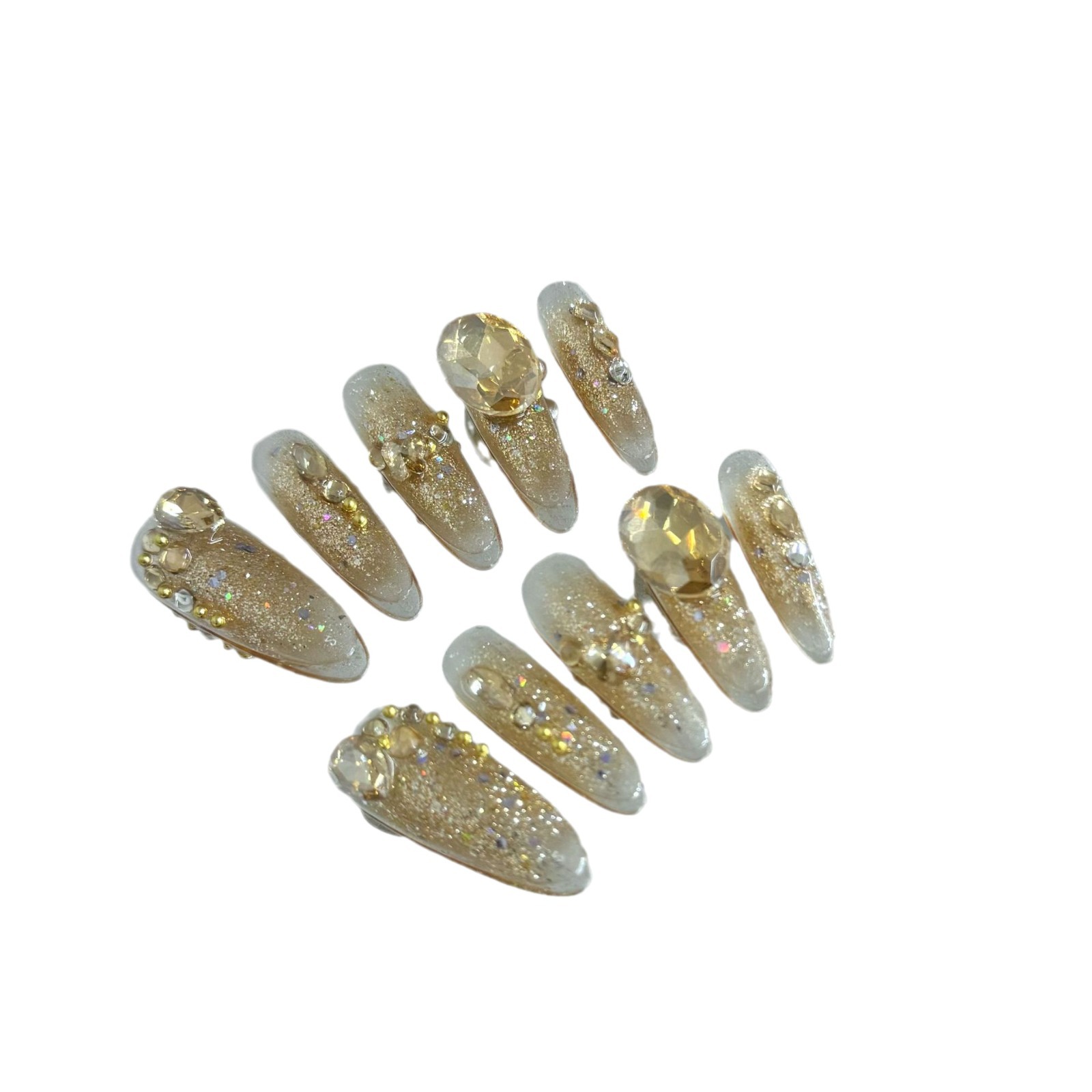 手工穿戴甲初秋款纯欲爆闪轻奢香槟碎钻可拆卸穿戴甲成品指甲贴片