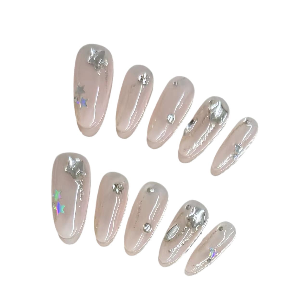 纯手工穿戴甲温柔蜜桃渐变粉嫩嫩少女感爆闪贴钻气质可爱蝴蝶美甲